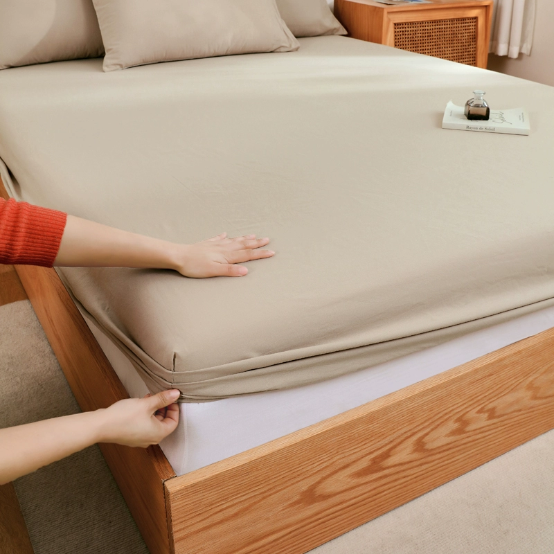 Category A maternal and infant grade fitted sheet cover cotton khaki three-piece set