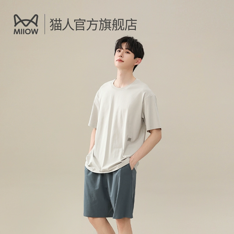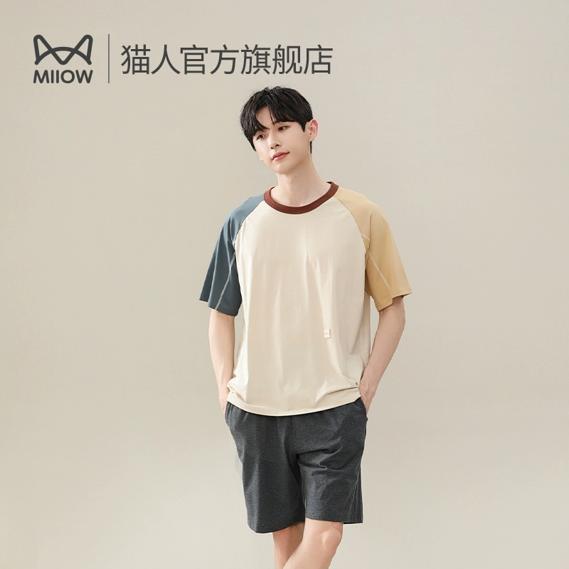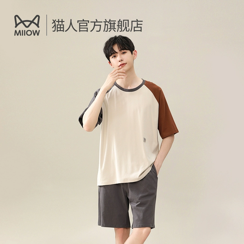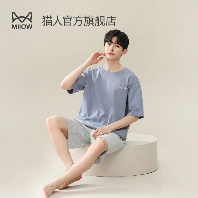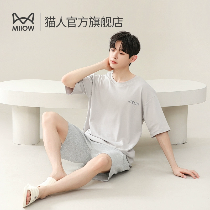 Catman Modal Pajamas Men's Summer 2024 New Men's Short-Sleeved Ice Silk Summer Large Size Home Clothes Set