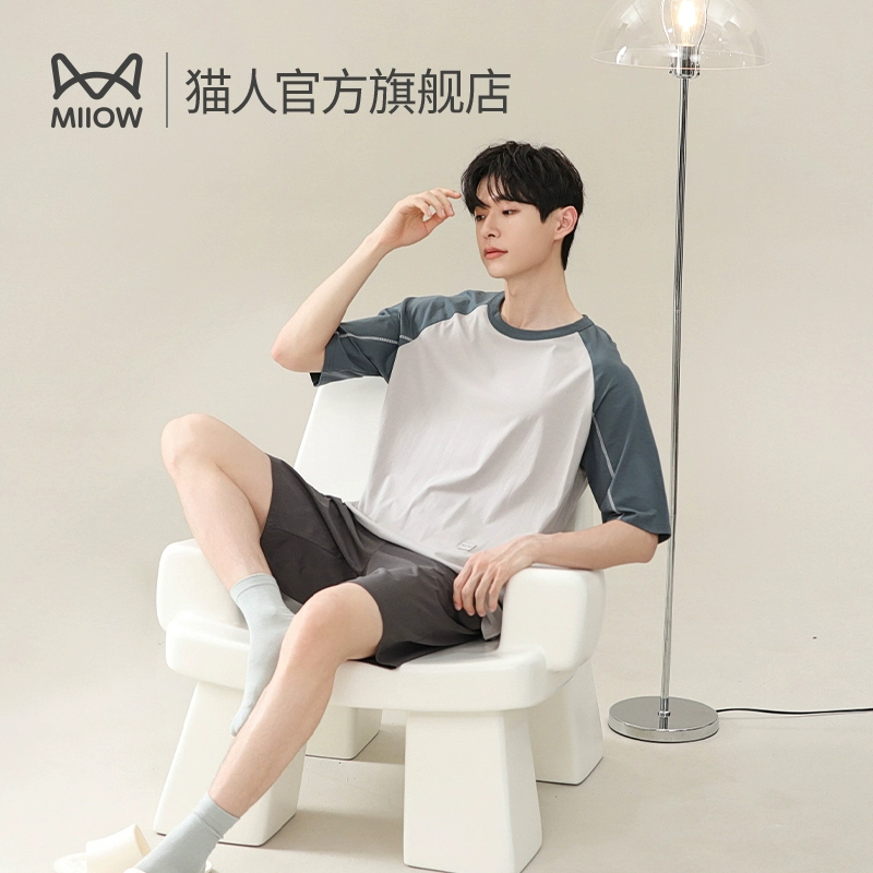 Catman Modal Pajamas Men’s Summer 2024 New Men’s Short-Sleeved Ice Silk Summer Large Size Home Clothes Set