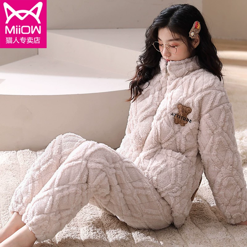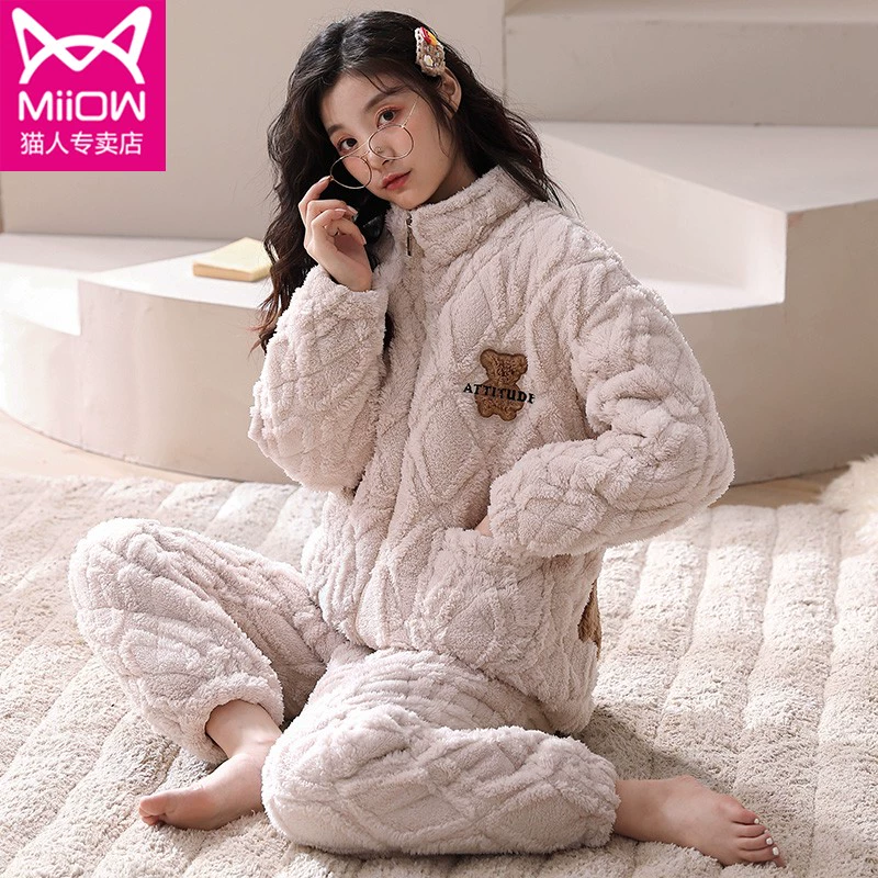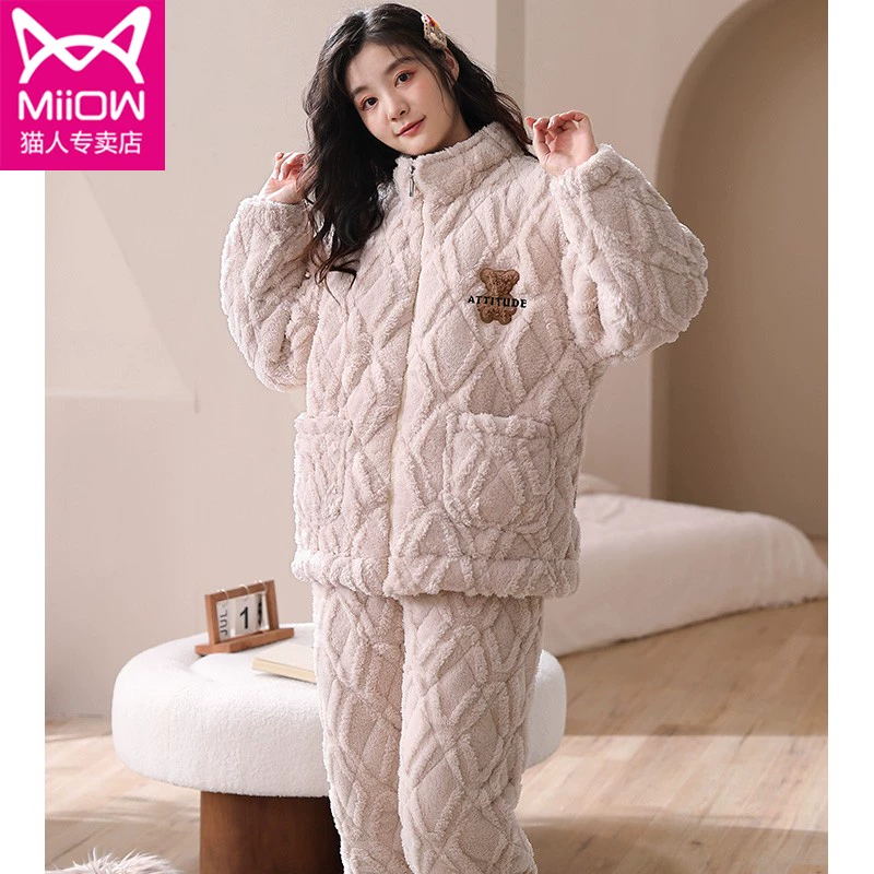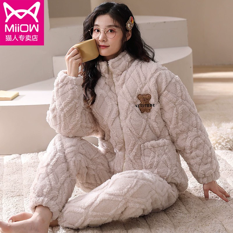 | nameOriginal | Catman pajamas for women winter coral velvet thickened plus velvet three-layer quilted zipper 2024 new home wear suit day |