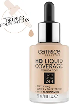 The HD Liquid Coverage Foundation feels like a second skin and creates a velvety-matte, perfected complexion – for up to 24 hours! The ultra-light, liquid texture with high yet natural-looking coverage conceals skin imperfections, is encriched with skin-perfecting Niacinamide and is also waterproof, sweatproof and transferproof. The formula does not contain parabens or microplastics.*