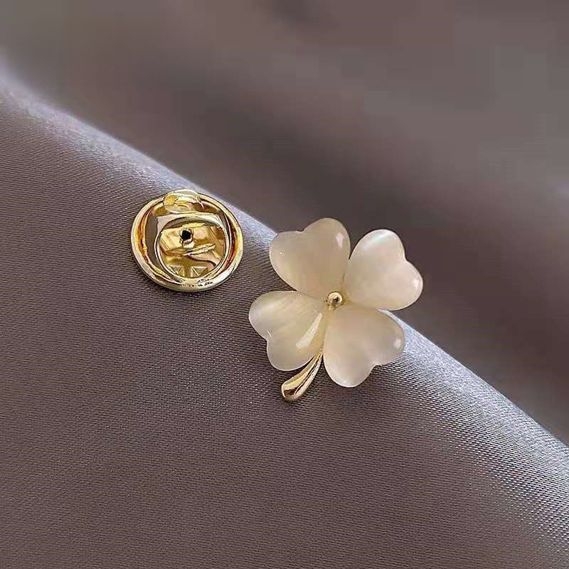 Cat’s eye stone four-leaf clover brooch women’s anti-light button summer small crowd cute Japanese style pin fixed clothes accessories