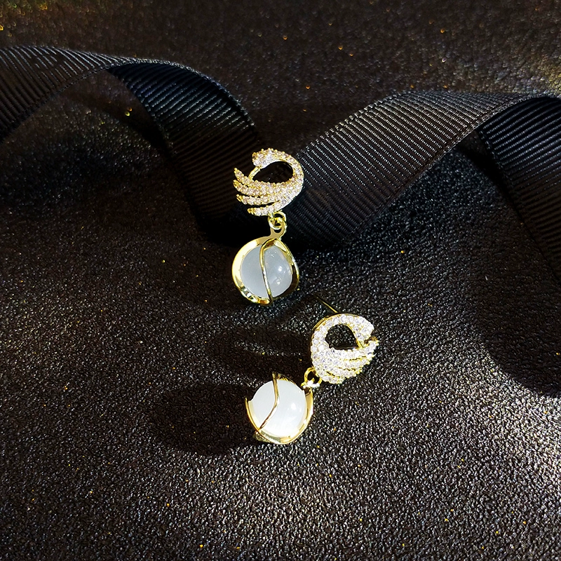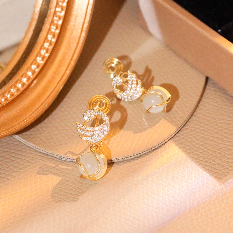 | nameOriginal | Cat's eye stone swan mosquito coil disc ear clip without pierced earrings 2024 new fashion niche high-end earrings |
