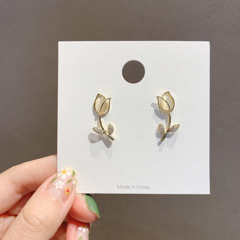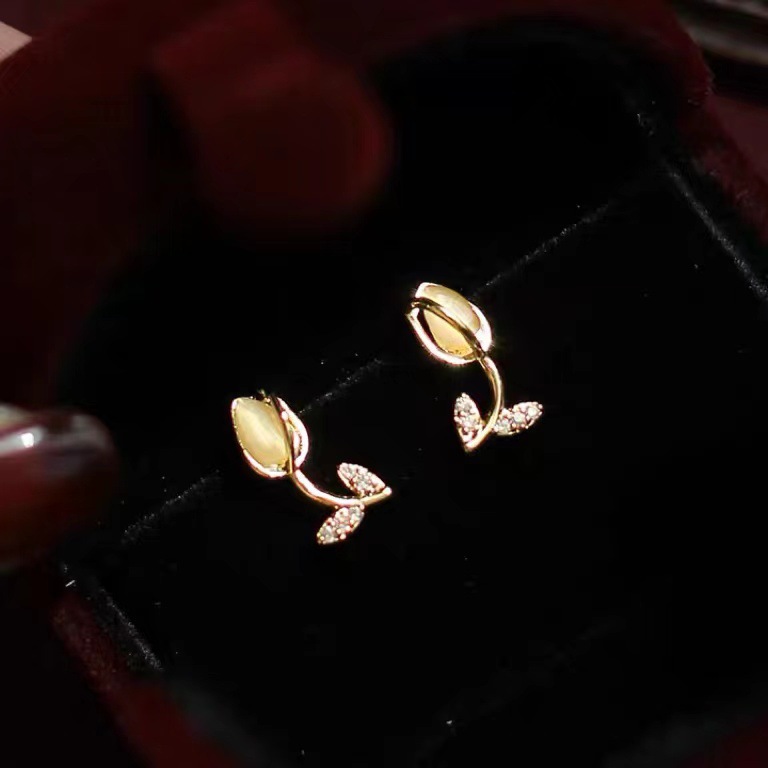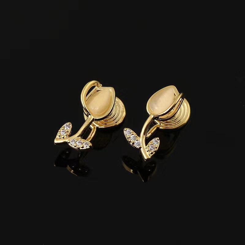 | nameOriginal | Cat's Eye Stone Tulip Mosquito Incense Plate Ear Clip New Small Flower Ear Studs Exquisite Ear Clip Fashionable All-match |