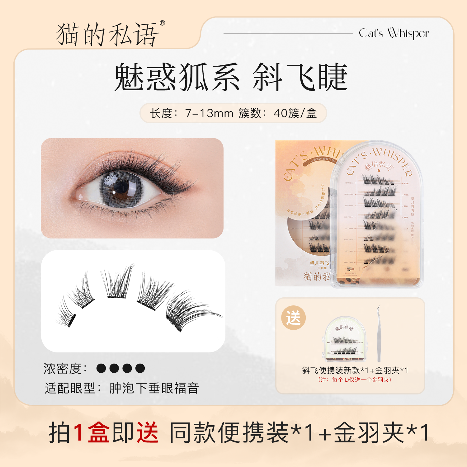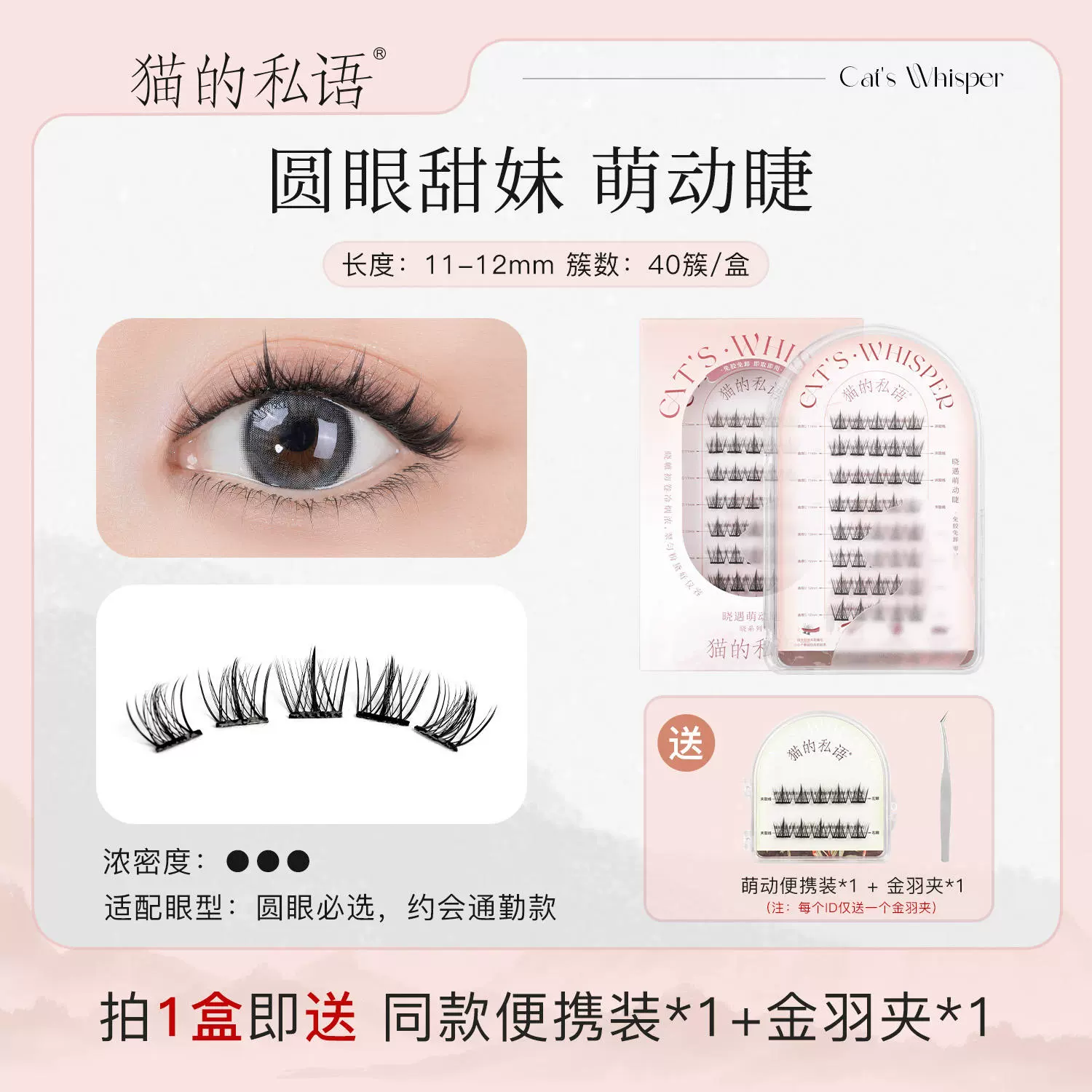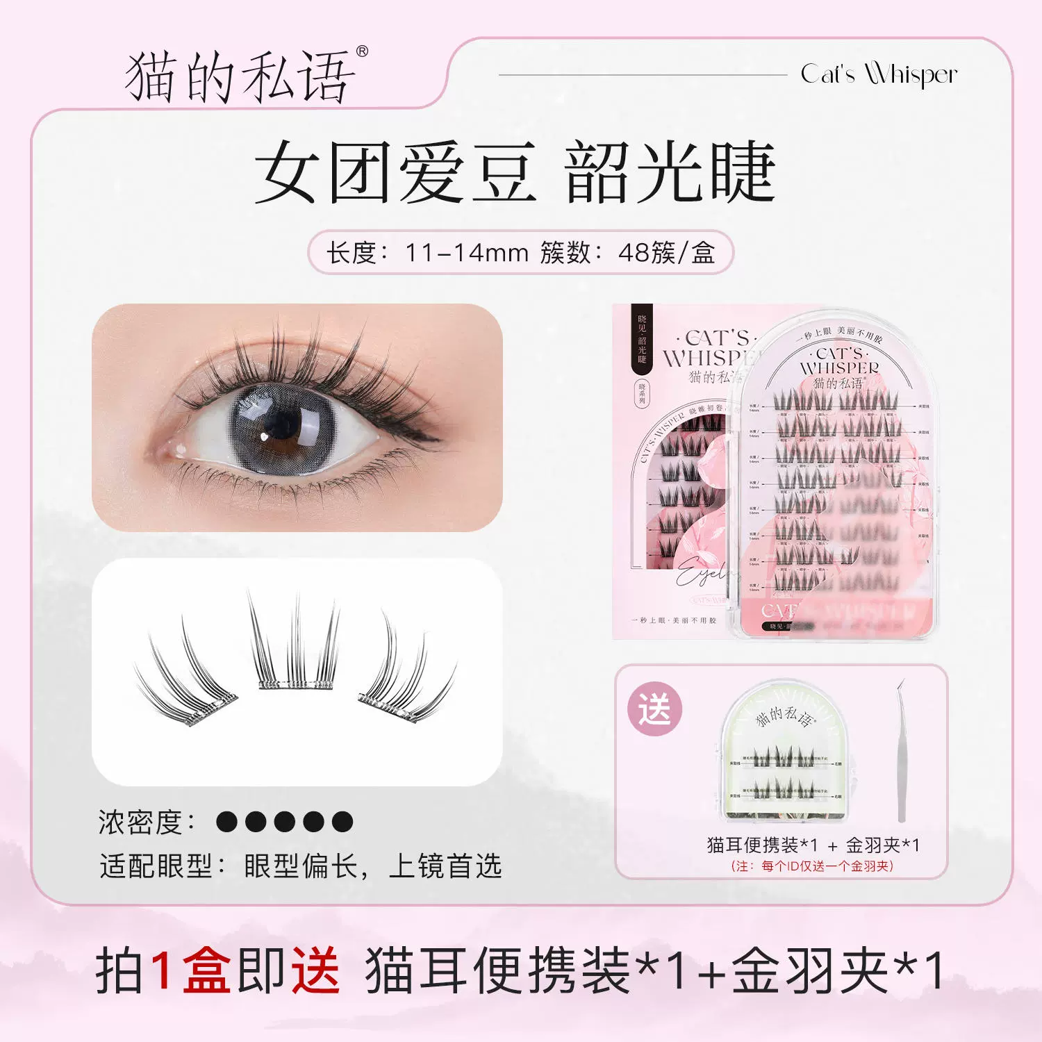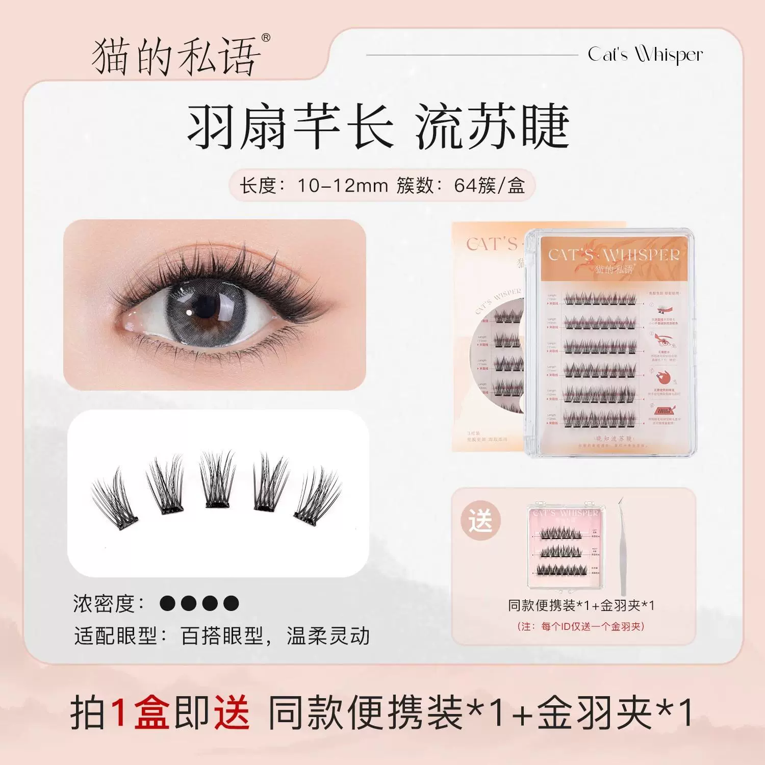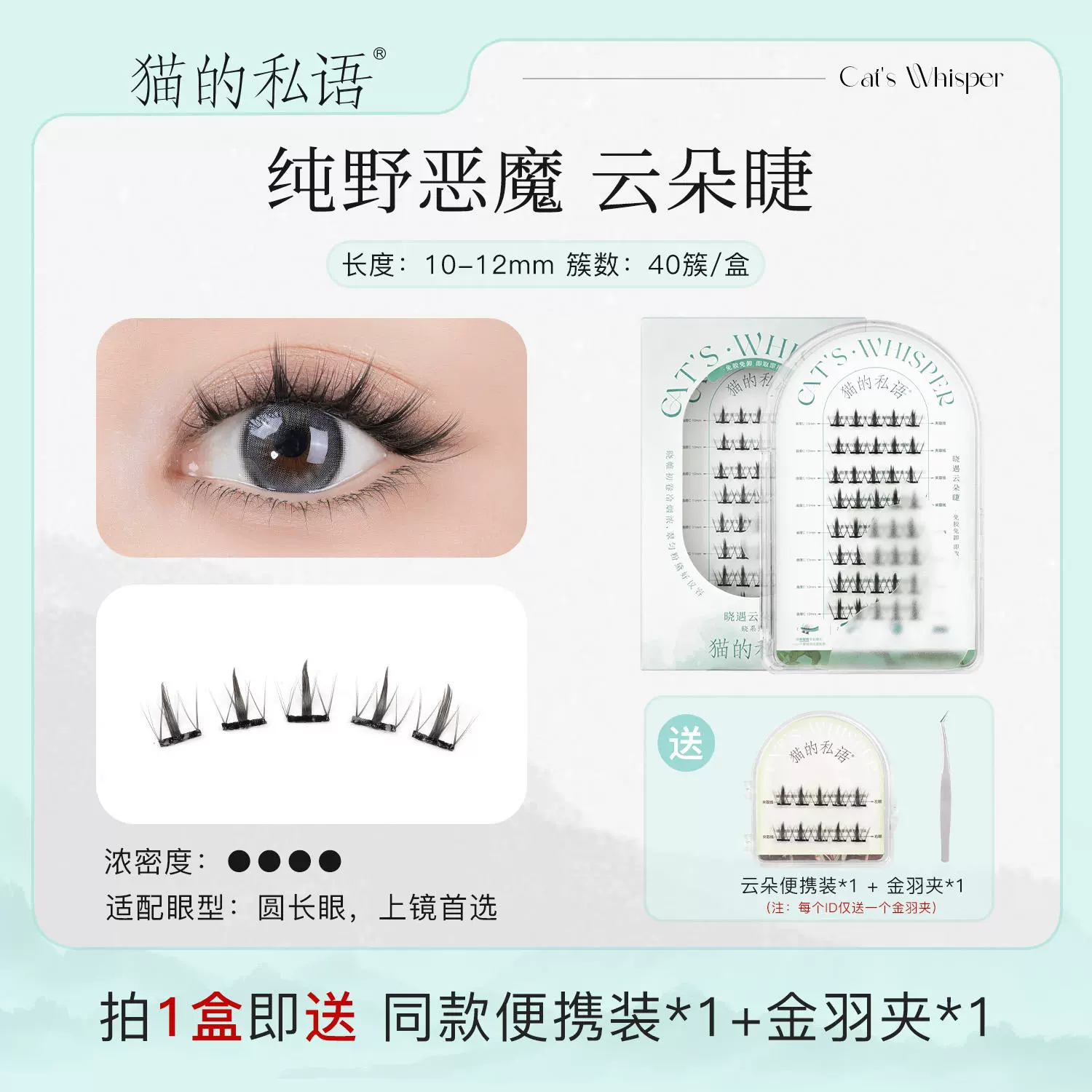 Cat’s personal whisper -free fake eyelashes, eyelashes, eyelashes self -stick, supernatural stalk short travel for novice