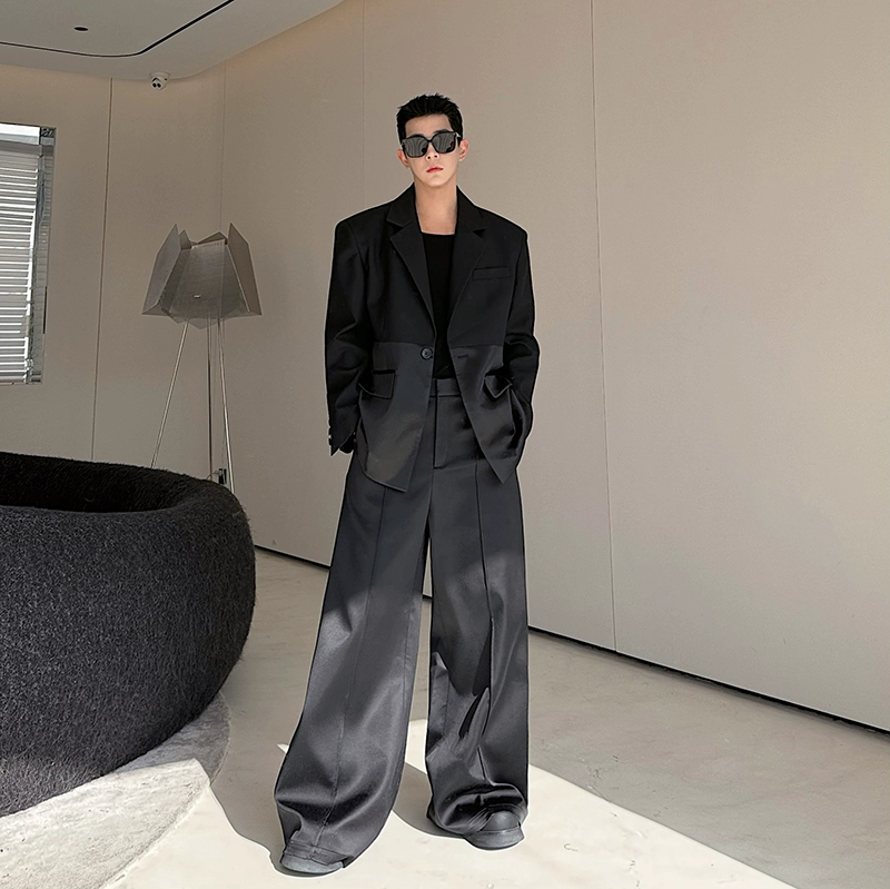 Catwalk three-dimensional deconstructed acetate patchwork suit shoulder pads