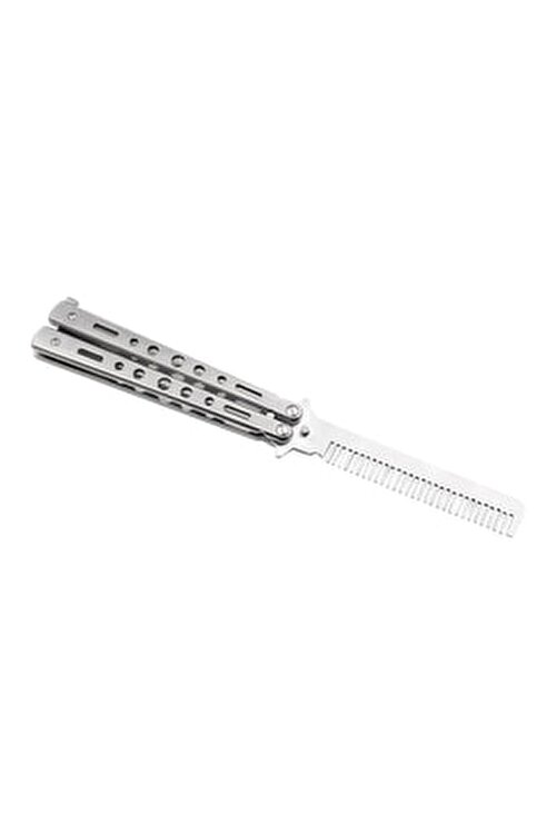 Steel Folding Hair Styling Butterfly Comb Features: Awesome Application tool: The steel butterfly comb is suitable for learning how to use Simulation tools to avoid cutting and bruising of hands, there is no cutting border. The ideal choice for starters is portable and practical. Stainless steel butterfly comb good weight balance, center of mass to make sure you can turn it properly, foldable design convenient and practical. The folding butterfly combs are made of high quality stainless steel. Sturdy and durable, not easy to rust, can use for a long time. Ideal for travel. Hiking, climbing mountains, profession, horseback riding, fishing and outdoor activities you can keep in your pocket and use them when you need them. Specifications: Color: Black-Silver Handle material: Metal Overall length: 22cm-8.66in Blade length: 9.8cm-3.86in Blade thickness: 0.15cm-0.06in Stem length: 12cm-4.72in Blade width: 1.8cm-0.7in Weight: 120g Package Content: 1*Butterfly Comb