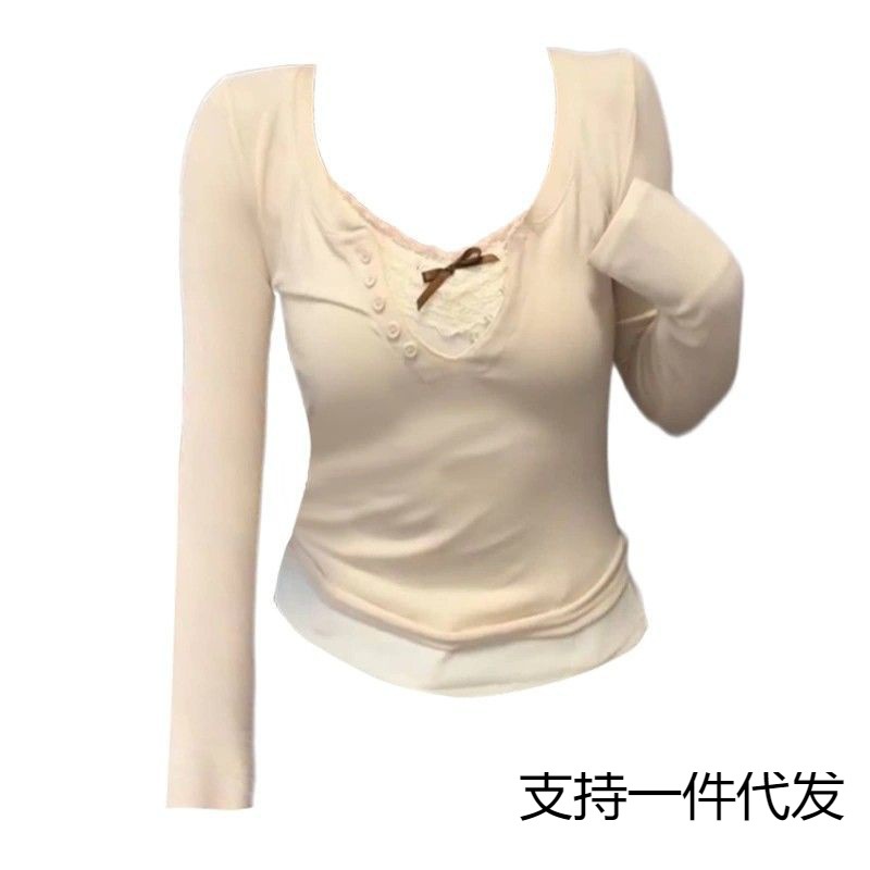 | nameOriginal | CD plus size Chubby Sister Pure Desire Hot Girl Slim-fit Collar Long-sleeved Top Women's Fall/Winter Stacked Lace Sling Two-piece Set |