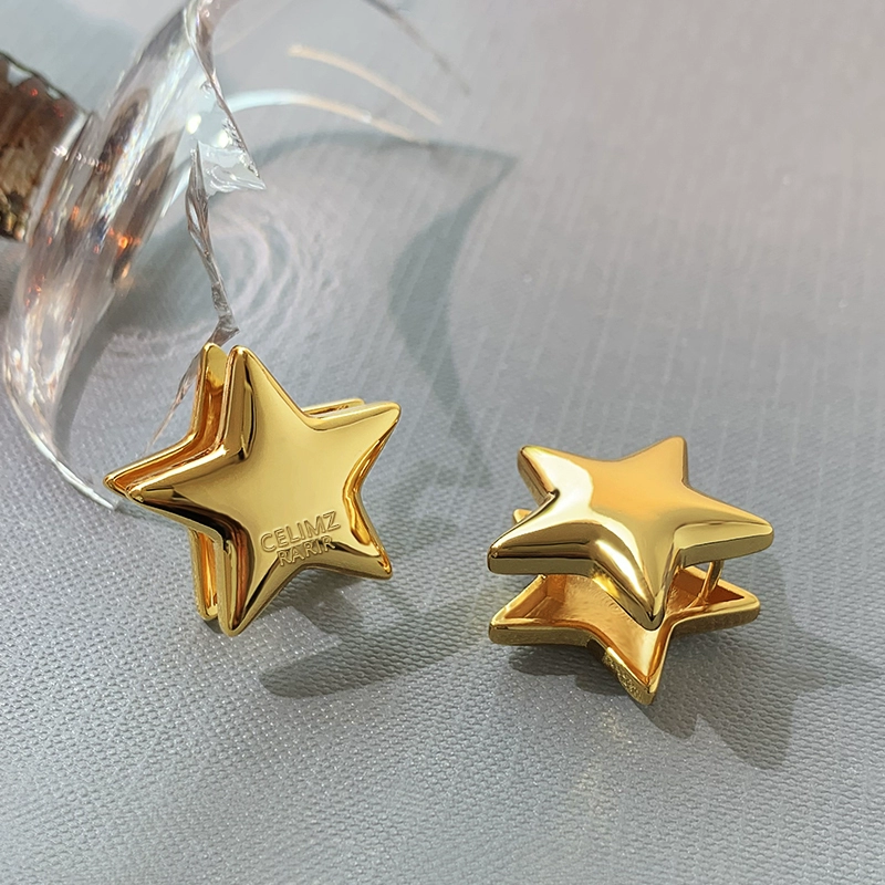 CE Five-pointed Star Women’s Exaggerated Golden Unique Earrings