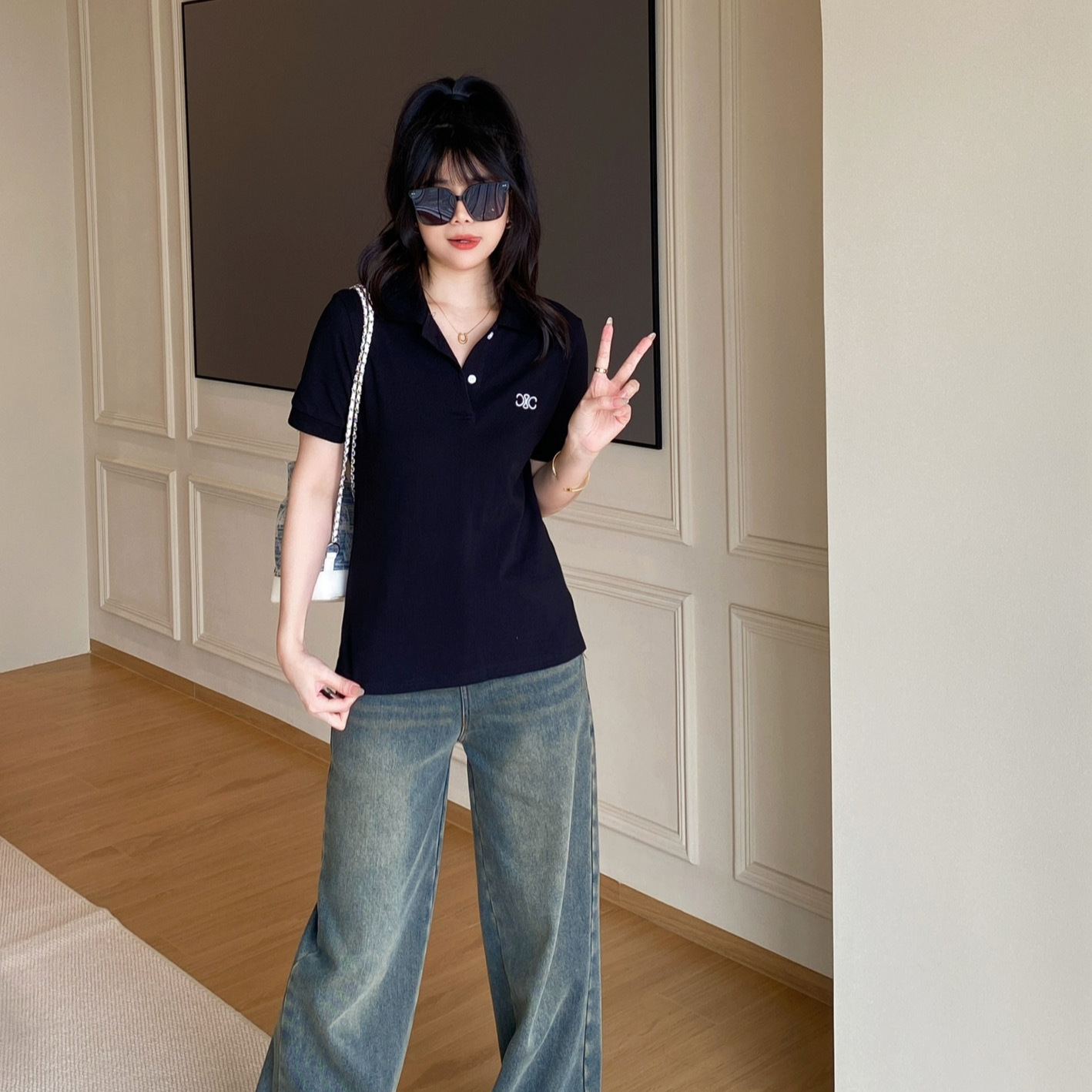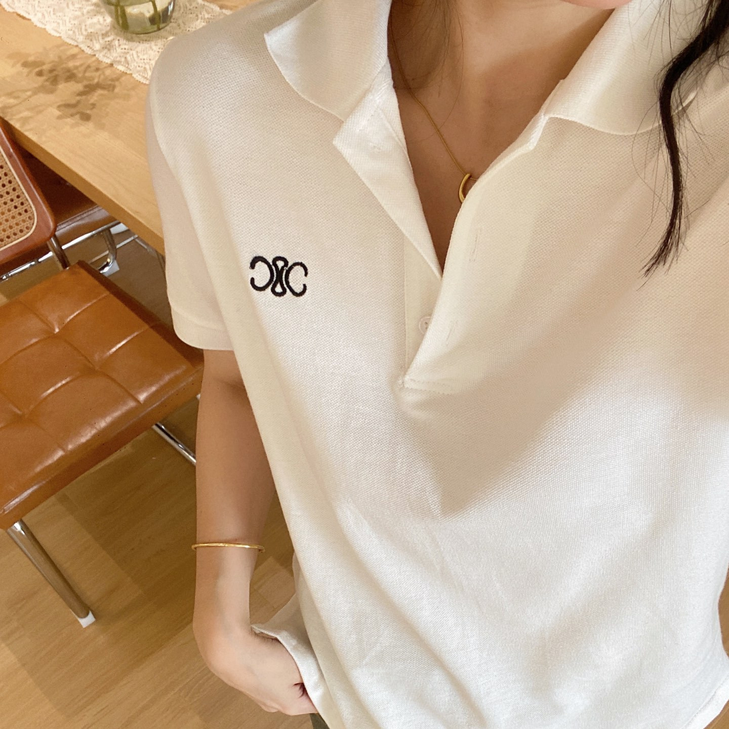 | nameOriginal | Ce24 Summer New Age-reducing All-match Letter Embroidered Solid Color Lapel Short-sleeved POLO Shirt Top |
