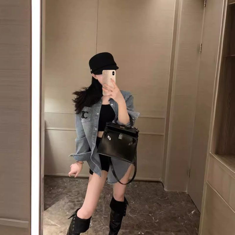 CE24ss New Fashion Embroidered Triumph Letter Washing Water Old Casual All-match Loose Denim Jacket