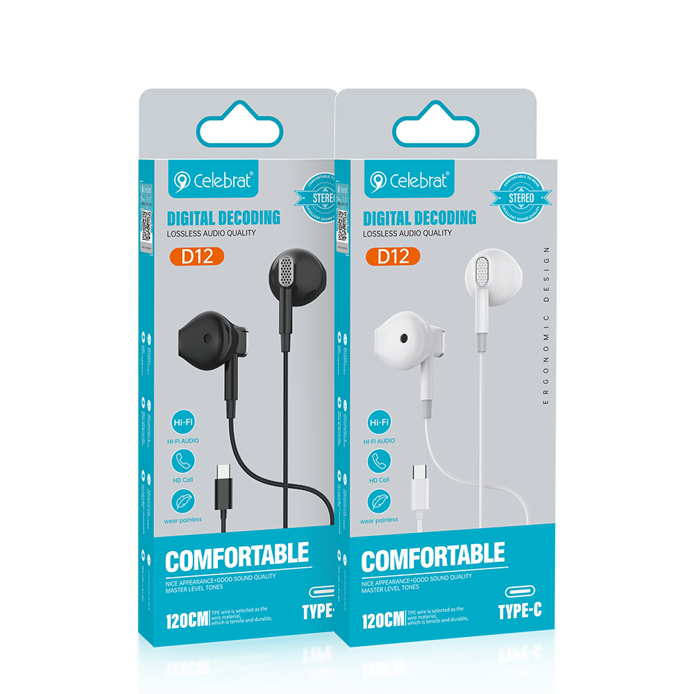 | nameOriginal | celebrat fully compatible stereo type-c in-ear wired headset heavy bass TPC wire control headset D12 |
