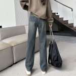 | nameOriginal | Cement gray narrow straight pants women's autumn and winter fleece-lined high waist slimming small tall mop wide leg jeans xs |