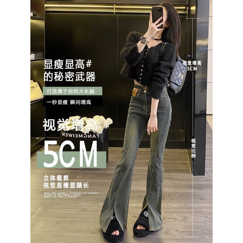 | nameOriginal | Cement gray split micro-jeans women's early spring 2024 new high waist slimming design sense niche flared pants |