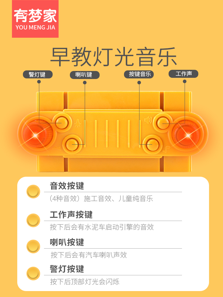 | nameOriginal | Cement mixer truck toy large boy children concrete tank car 5 baby 4 engineering car 2 machine 3 years old |