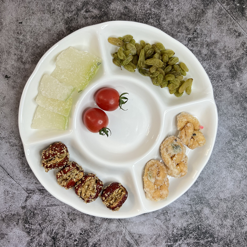 | nameOriginal | Ceramic Household White Marinated Meat Platter Cool Fruit Plate Restaurant Split Plate Fruit Plate Five-grid Plate snack plate Potato Strip Plate |