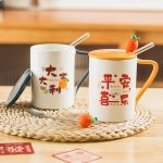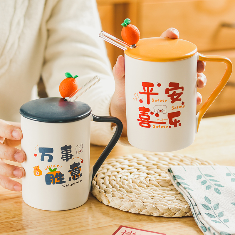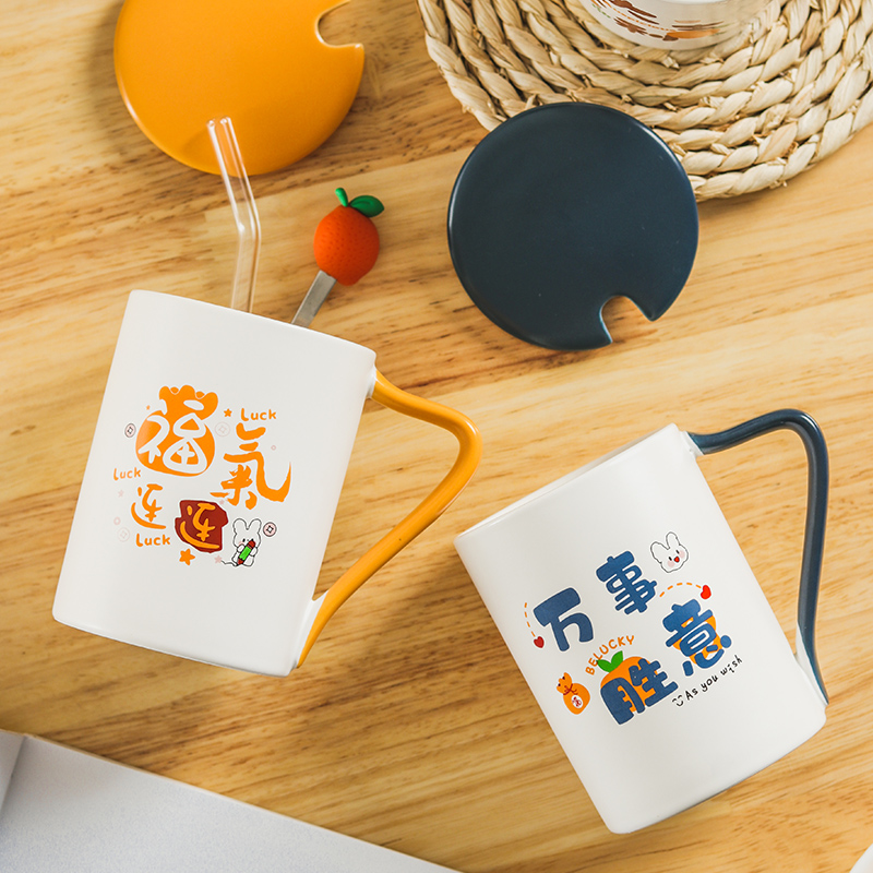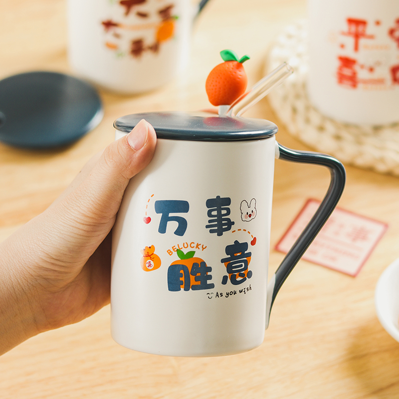 | nameOriginal | Ceramic Mug Women's Couple Drinking Cup with Lid and Spoon Instagram Style Cute Men's Coffee Cup Summer Niche Cup |