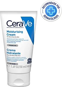 CeraVe Moisturizing Cream, 48H Body and Face Moisturizer for Dry to Very Dry Skin with Hyaluronic Acid and Ceramides, Fragrance Free, 1.69Oz, 50 ML