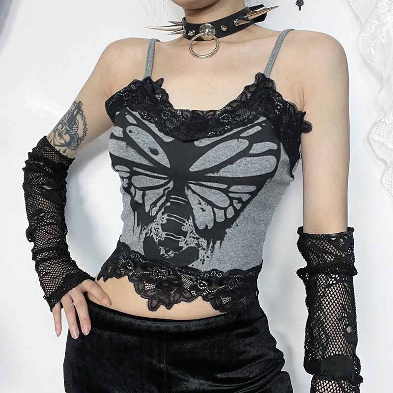 | nameOriginal | CF23703 Summer New Spice Girl Top Street-style Trendy Skull Butterfly Print Lace Camisole for Women |
