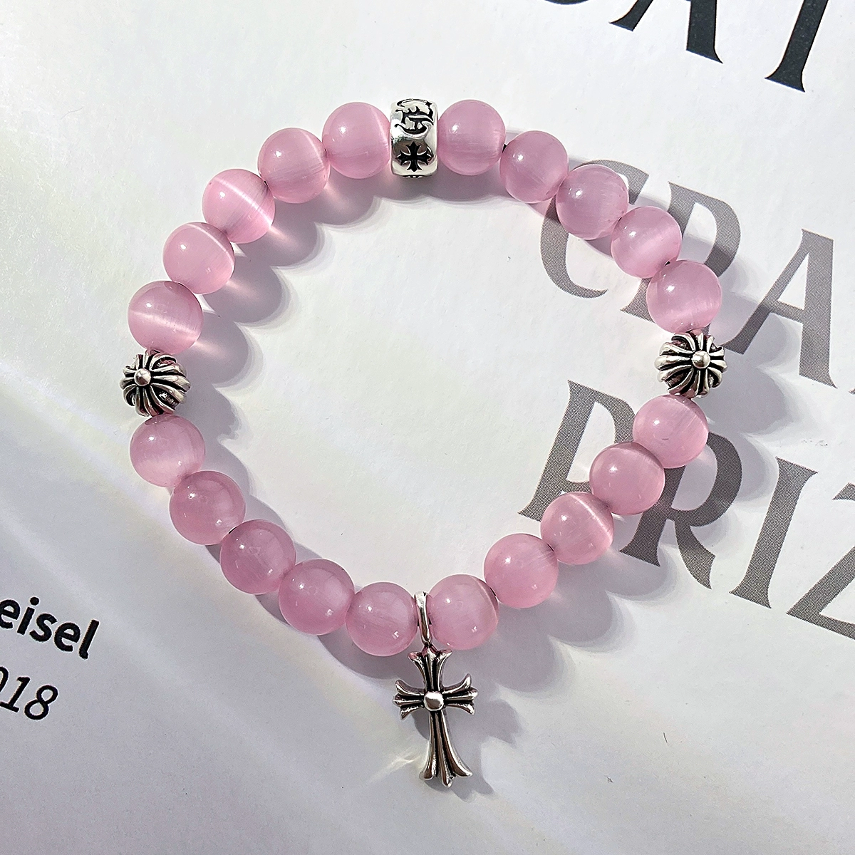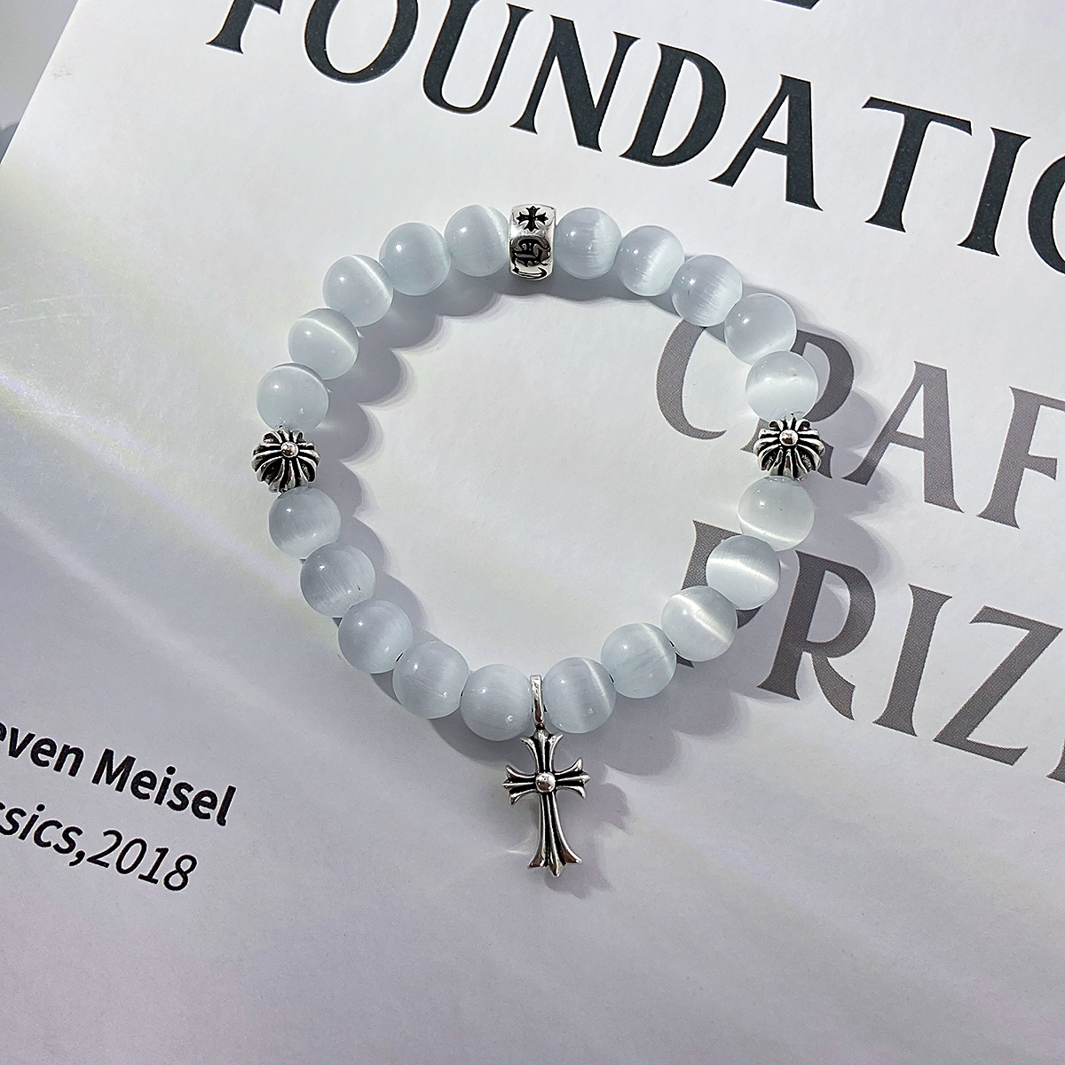 | nameOriginal | ch Cloro Cross Cat's Eye Bracelet Women's Niche High-end Obsidian Men's and Women's Natural White Agate Bracelet |