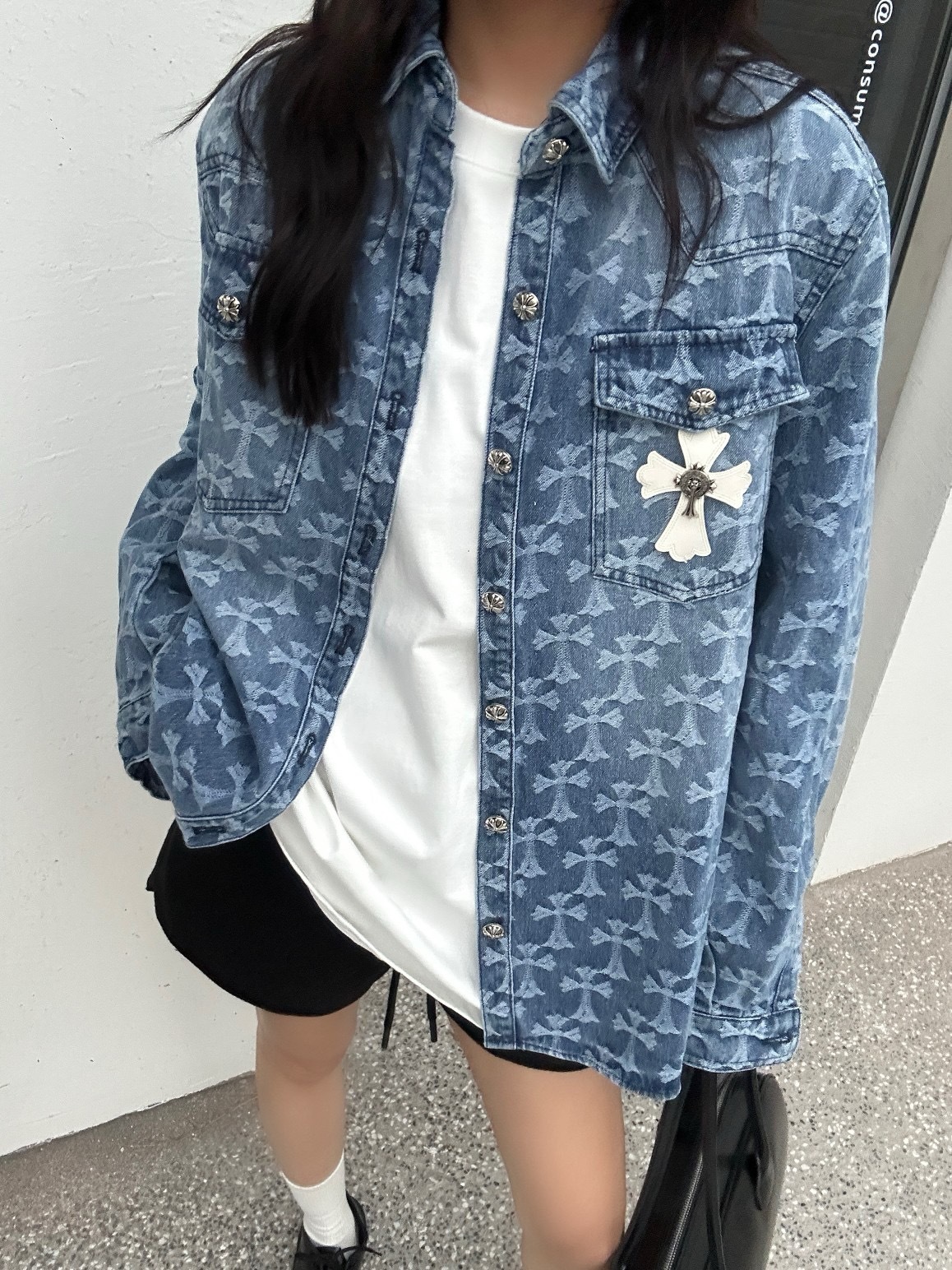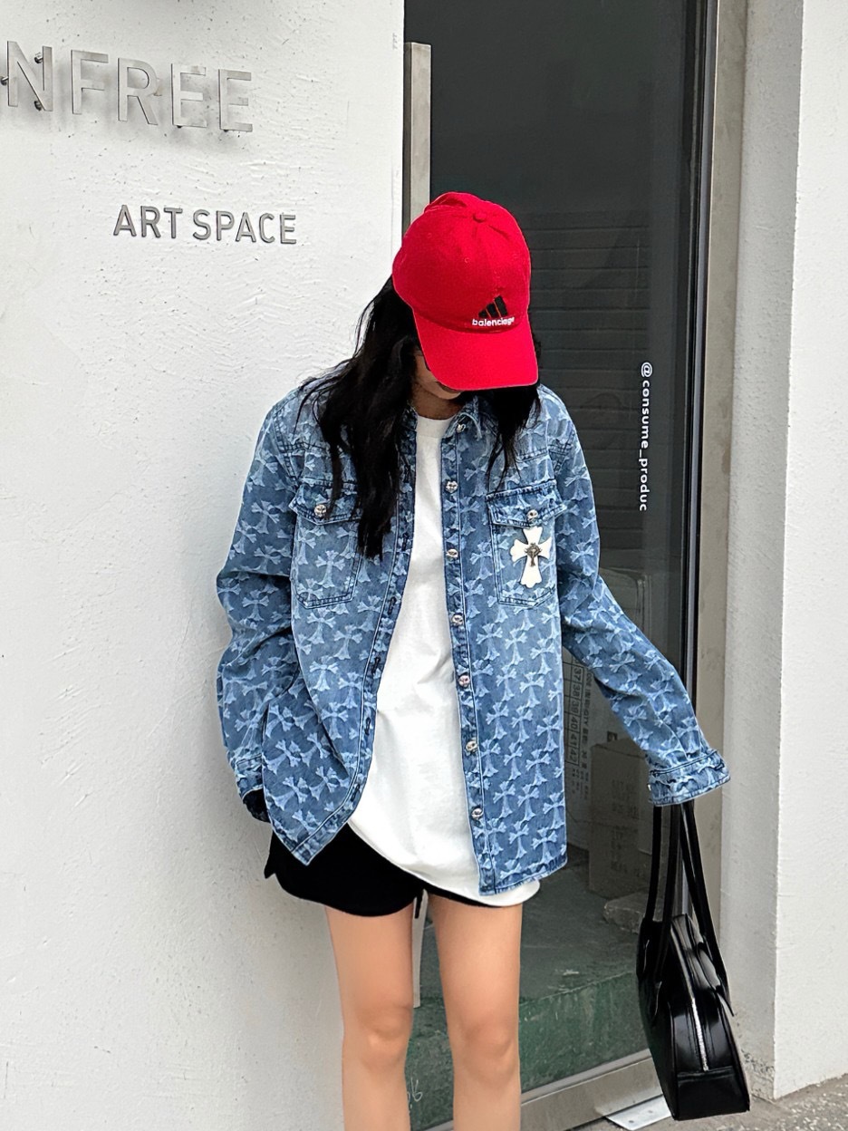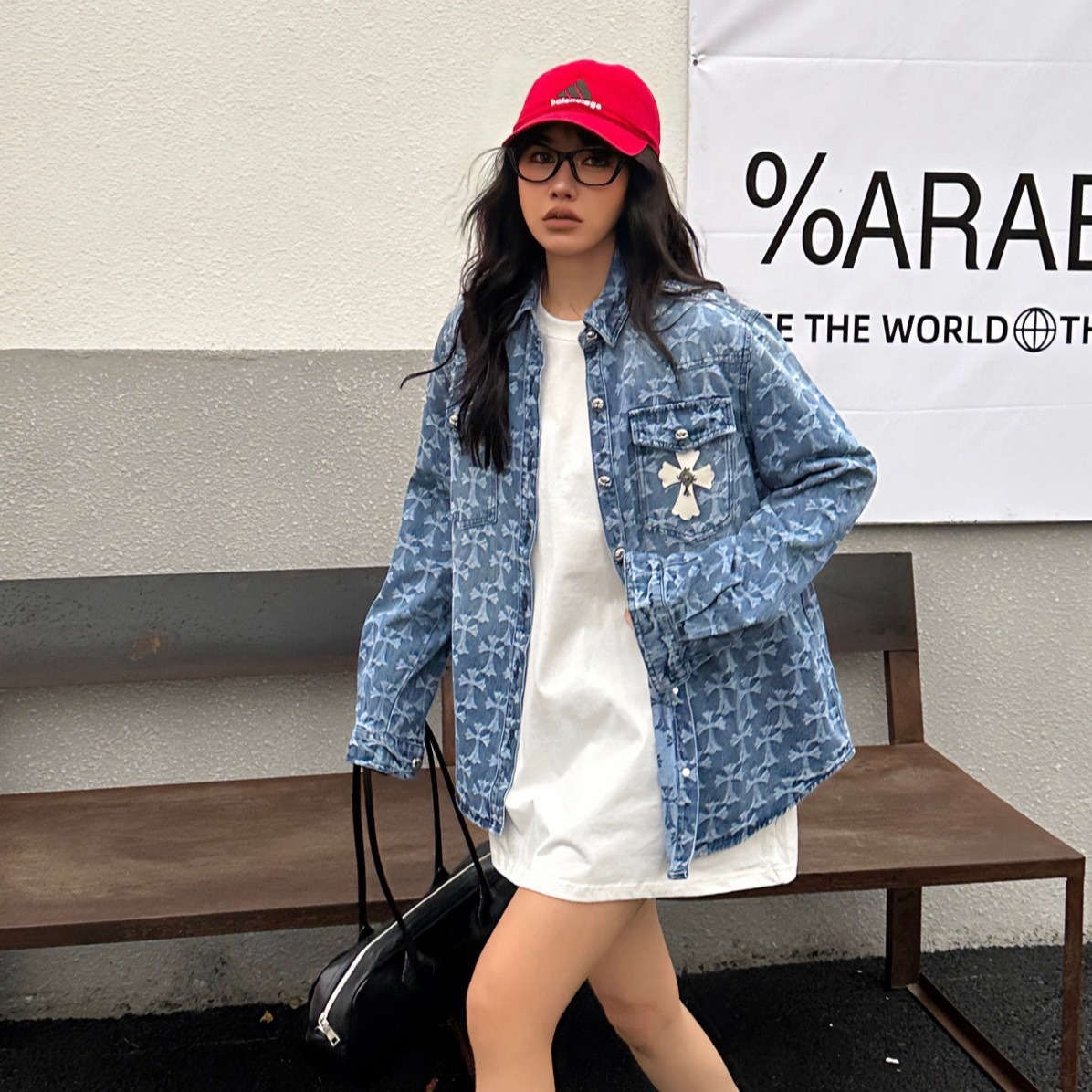 | nameOriginal | ch24 early autumn new full printed Denim coat retro blue logo decorative design fashionable all-matching coat for women |