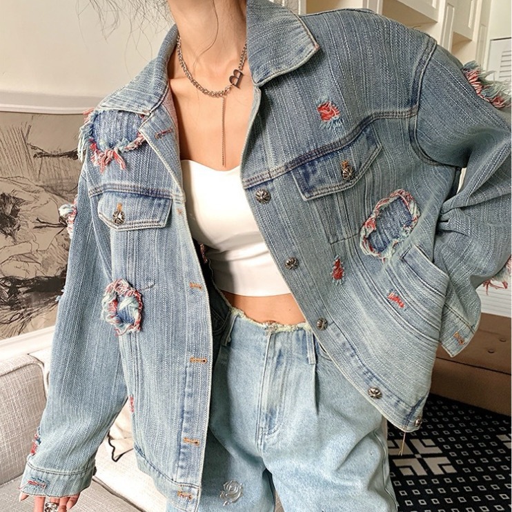 | nameOriginal | ch24ss New wash craft + Sanskrit embroidered logo Liuding casual loose Denim coat |