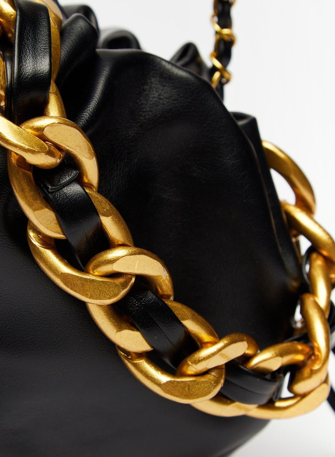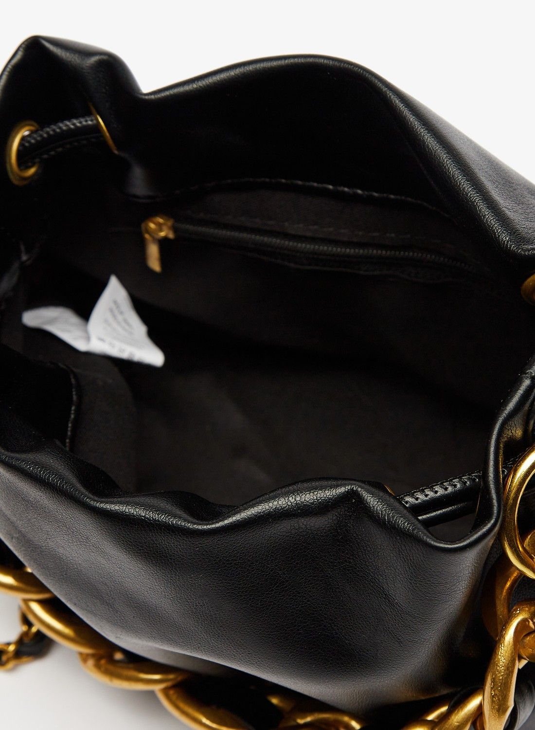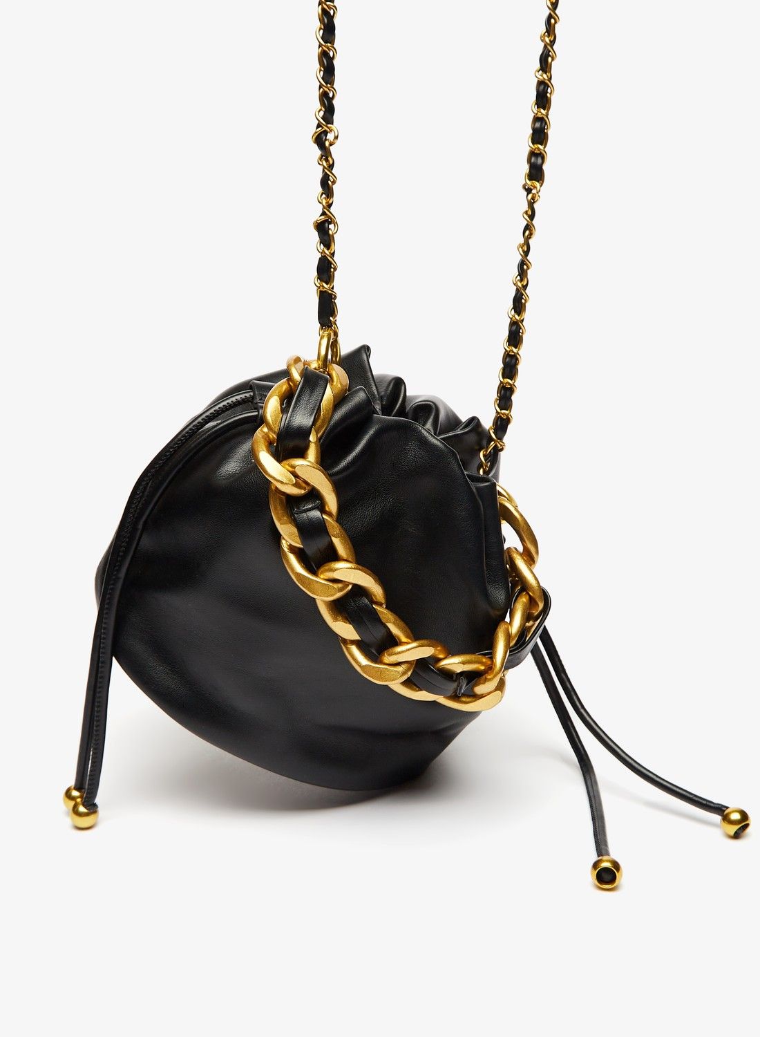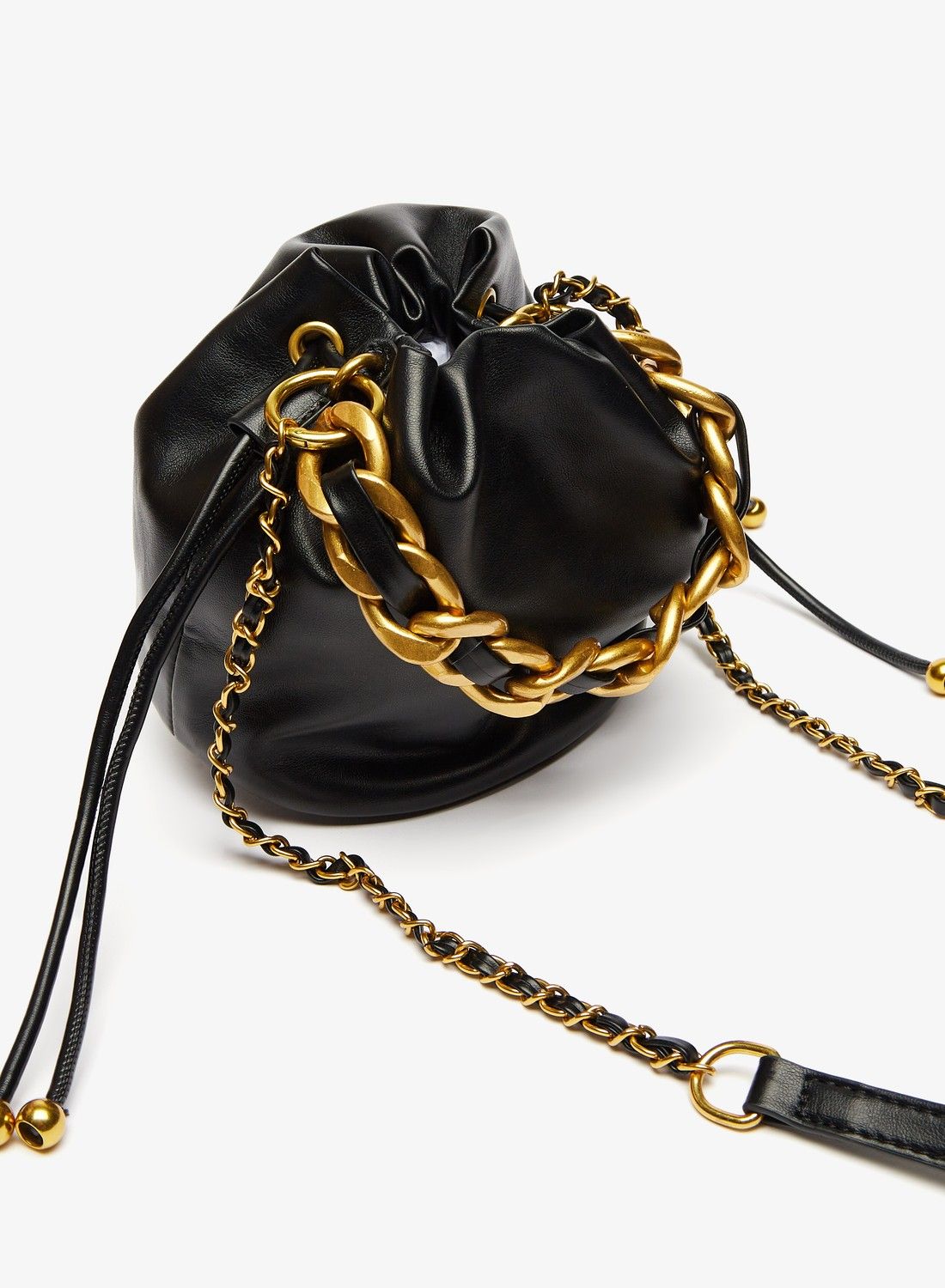 | nameOriginal | Solid Crossbody Bag with Chain Accented Strap and Drawstring Closure |