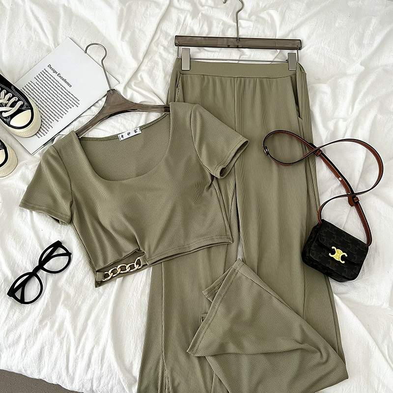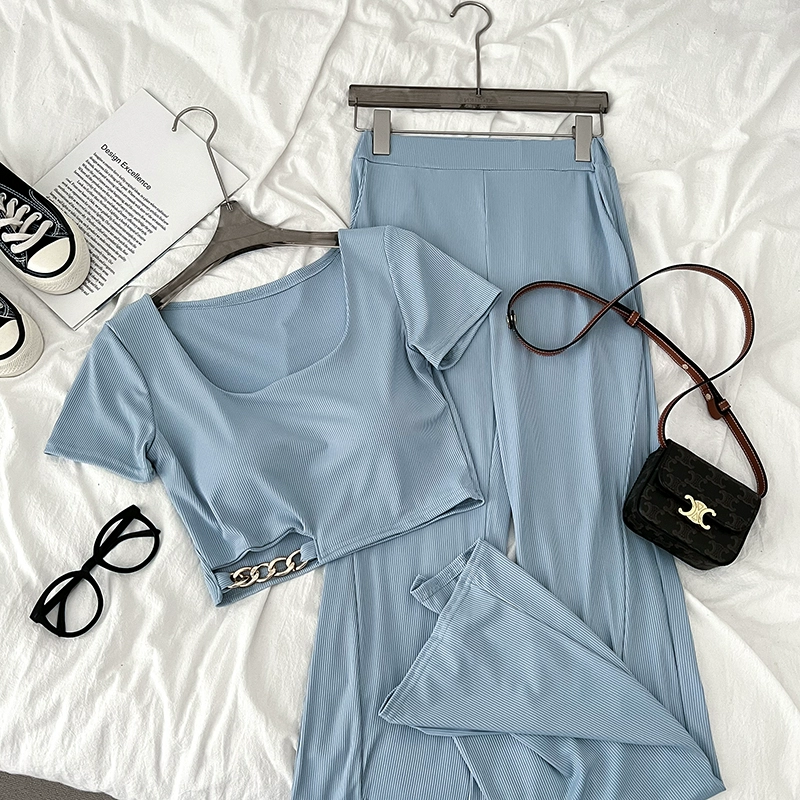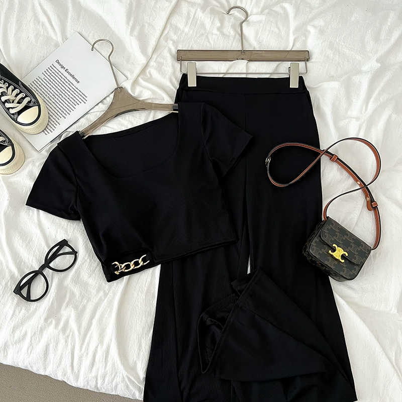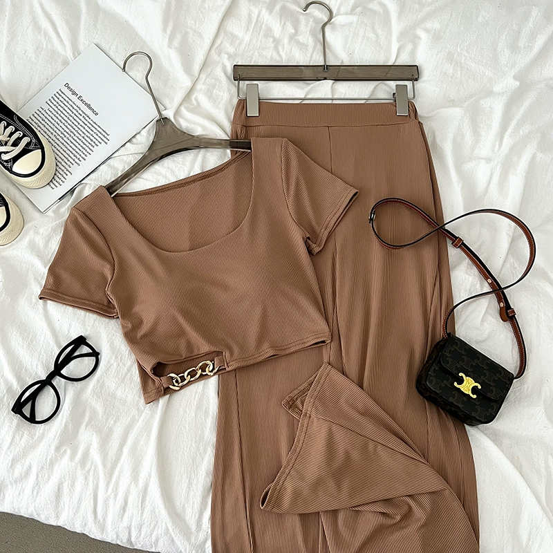 | nameOriginal | Chain hollow high-waist slimming slit two-piece t-shirt |