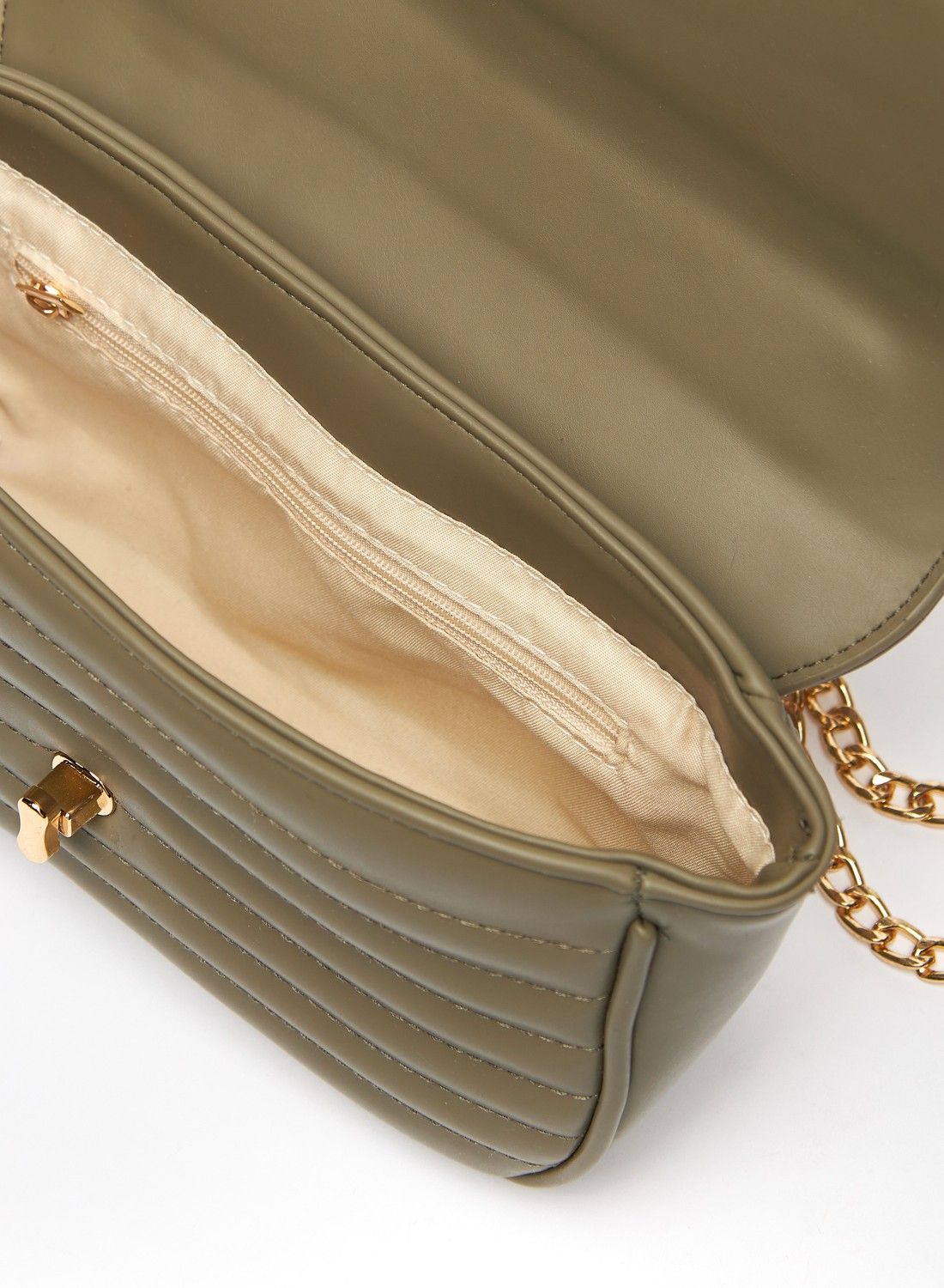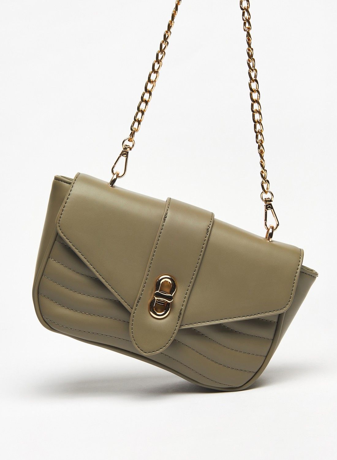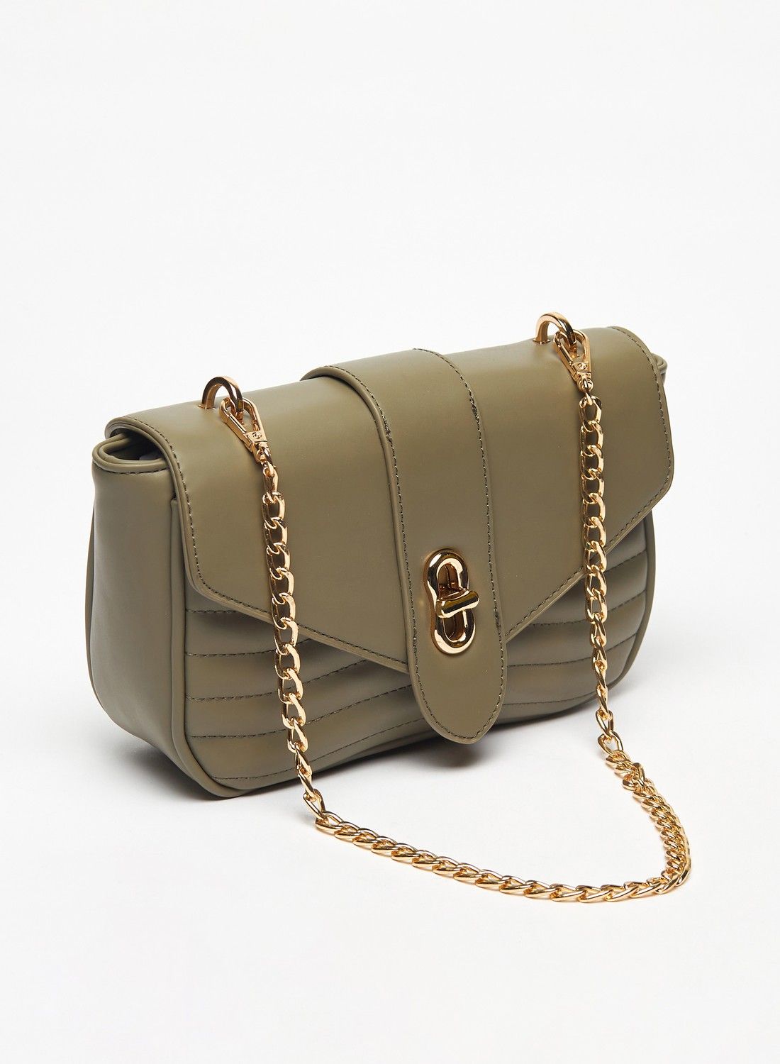 | nameOriginal | Quilted Crossbody Bag with Chain Strap and Flap Closure |