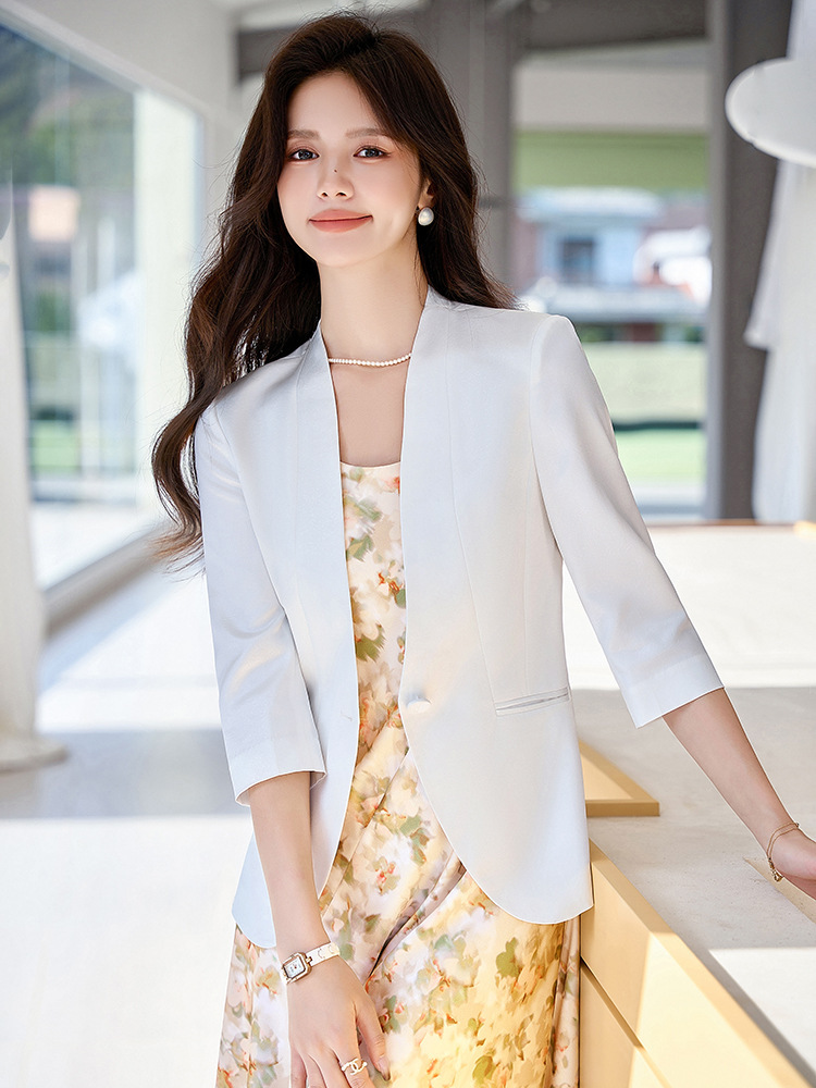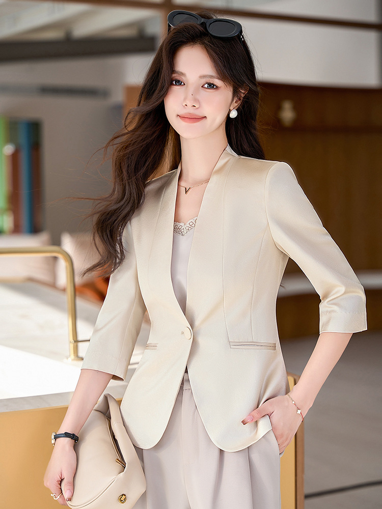 | nameOriginal | Champagne Color Satin Seven-point Sleeve Thin Small Suit Women's Summer 2024 New Slim-fit Slimming Short Mid-sleeve Suit |