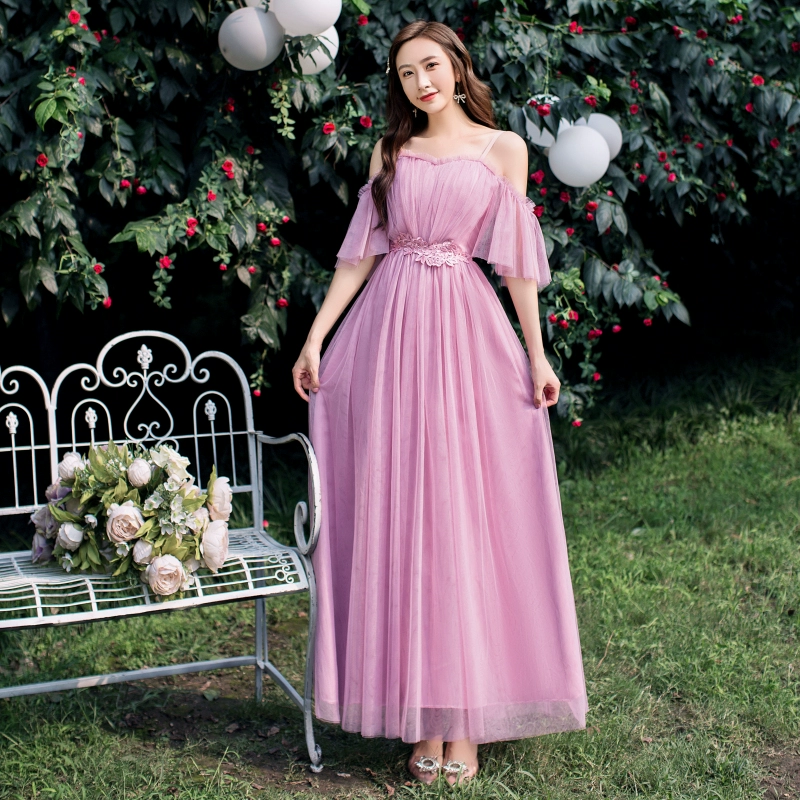 | nameOriginal | Champagne color spring and summer slim fit sister reunion bridesmaid dress |
