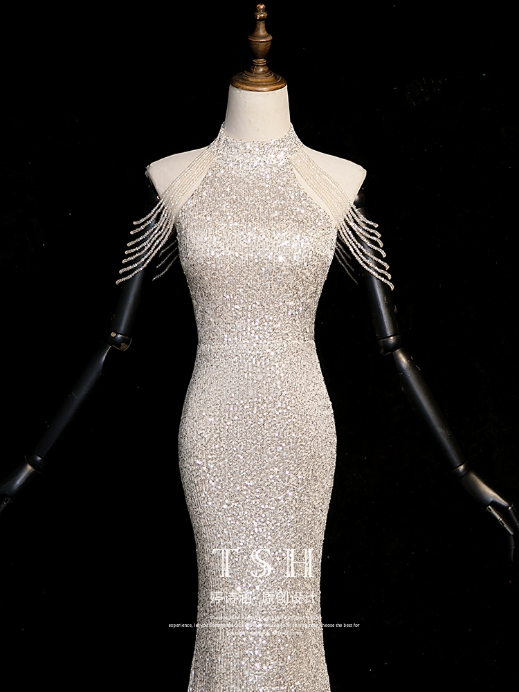 | nameOriginal | Champagne color temperament slimming fishtail skirt evening dress for celebrities |