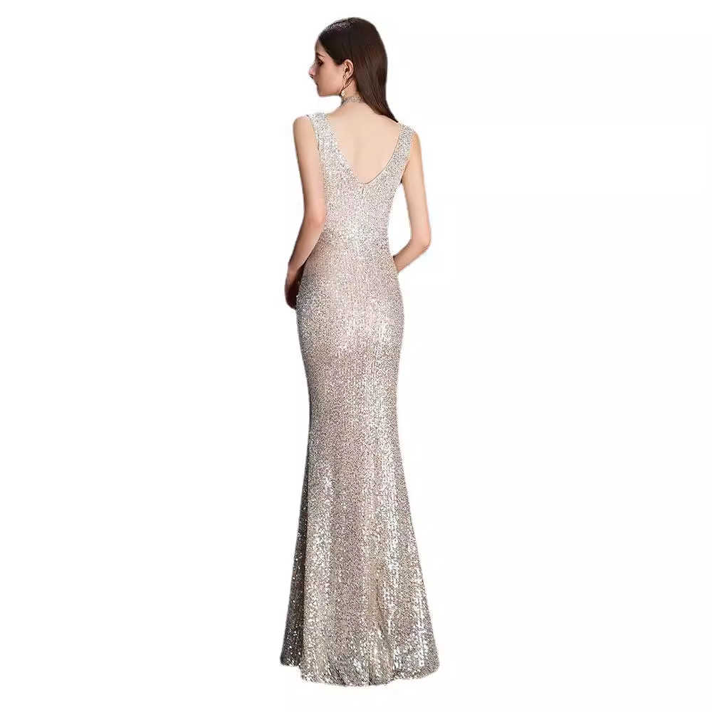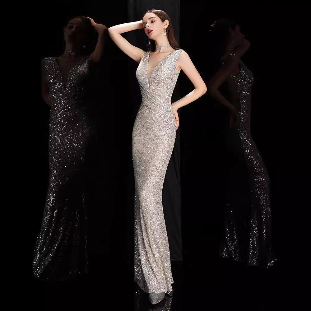 | nameOriginal | Champagne Evening Dress 2024 Spring Banquet Sequin Fishtail Slim-fit Sexy Long Dress Host Annual Meeting Evening Dress |