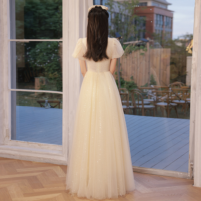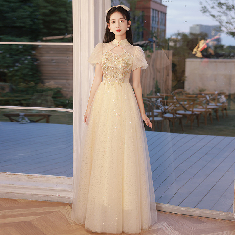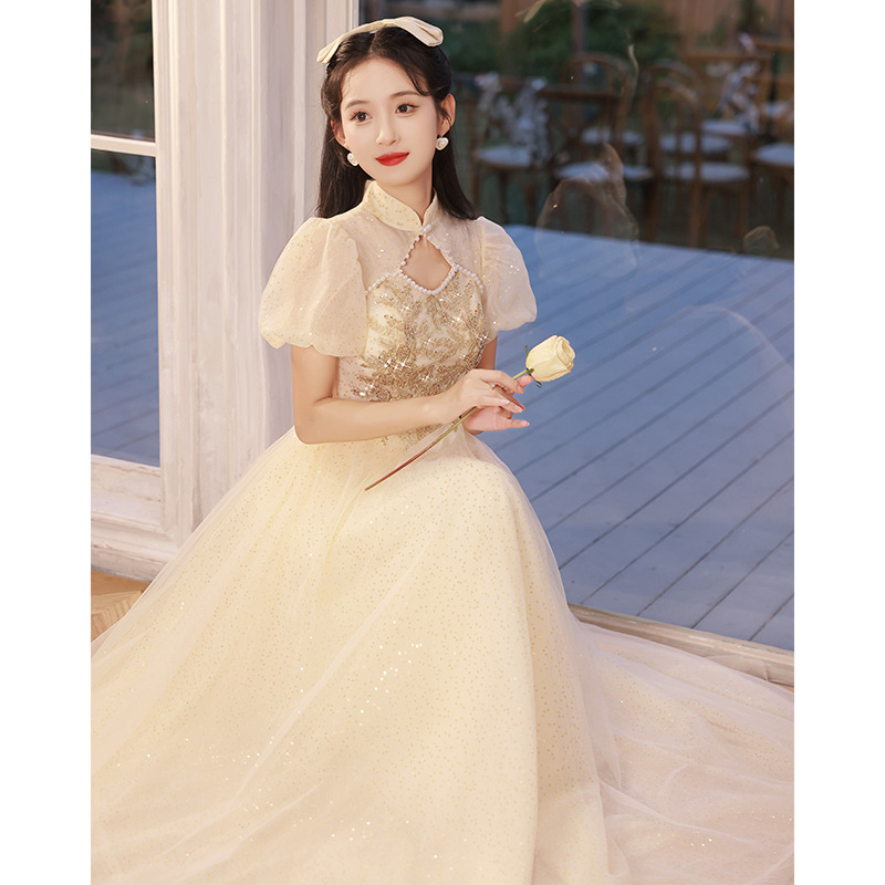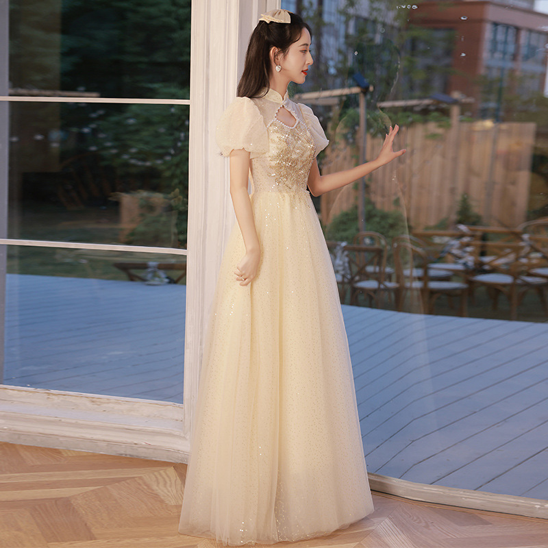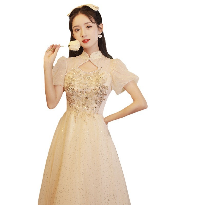 Champagne evening dress for women 2024 new high-end niche student art exam banquet host dress annual meeting light luxury