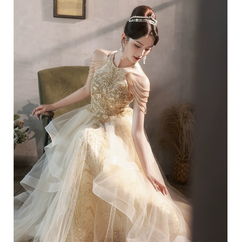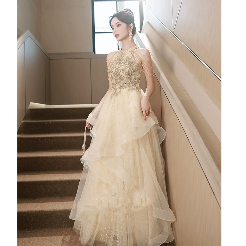 | nameOriginal | Champagne Evening Dress Women's Banquet Elegant High-definition Tassel Host High-end Light Luxury Niche High-end Performance Dress |