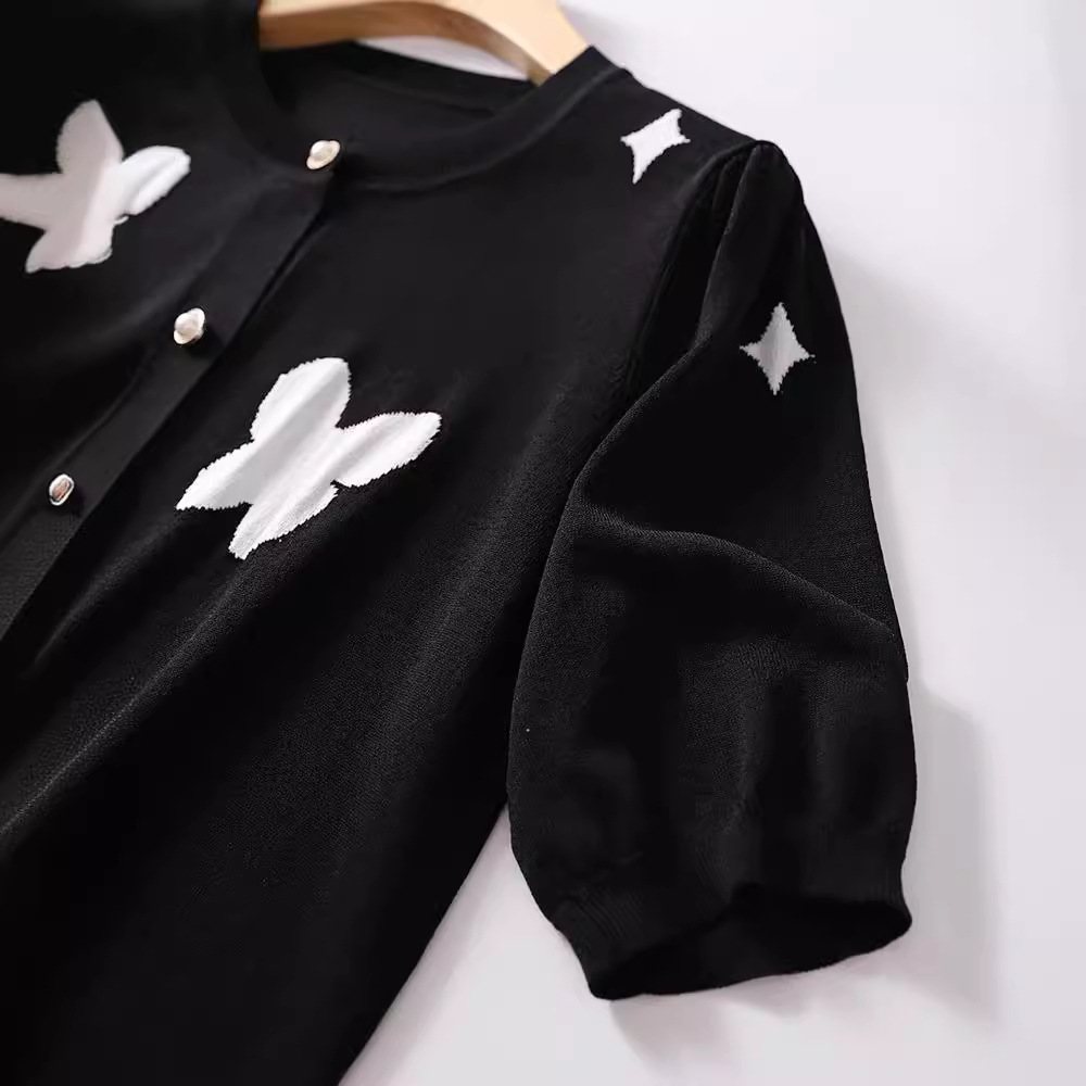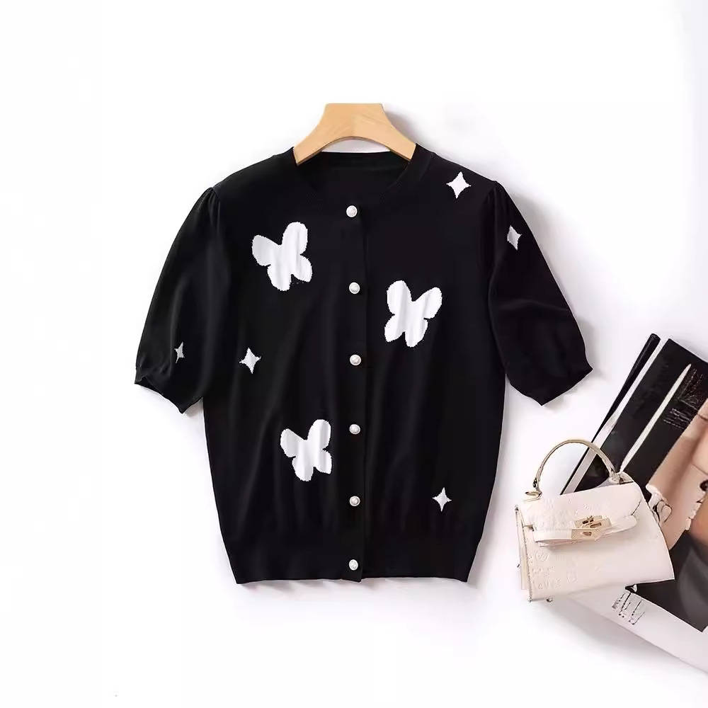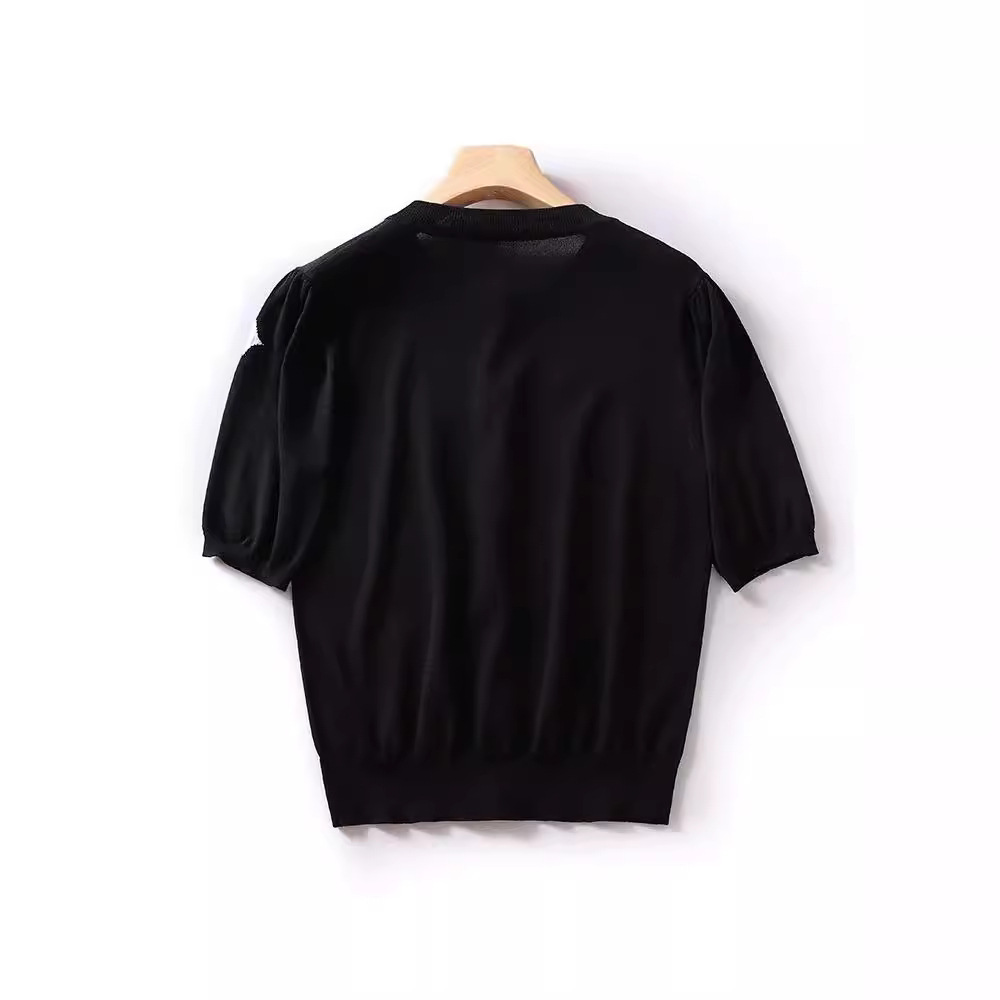 | nameOriginal | Chanel Style Butterfly Black Sweater Top Women's 2024 Summer Thin Celebrity Elegant Slimming All-match Ice Silk T-shirt |