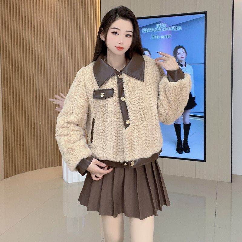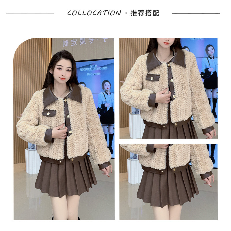 | nameOriginal | Chanel style coat for women 2023 autumn and winter New lamb plush fur integrated thickened brown fur top short |