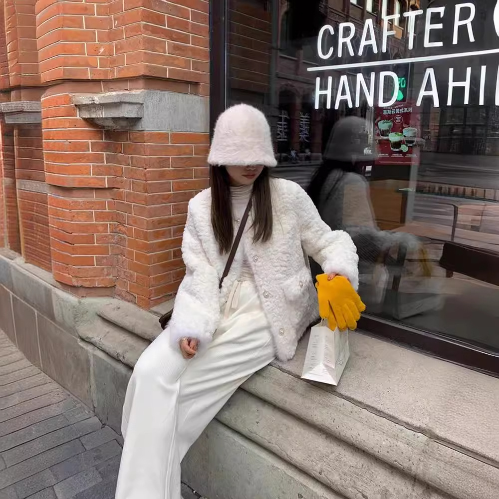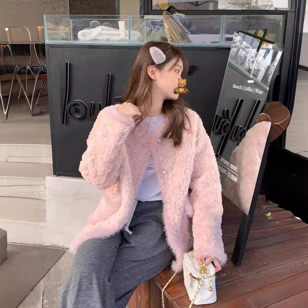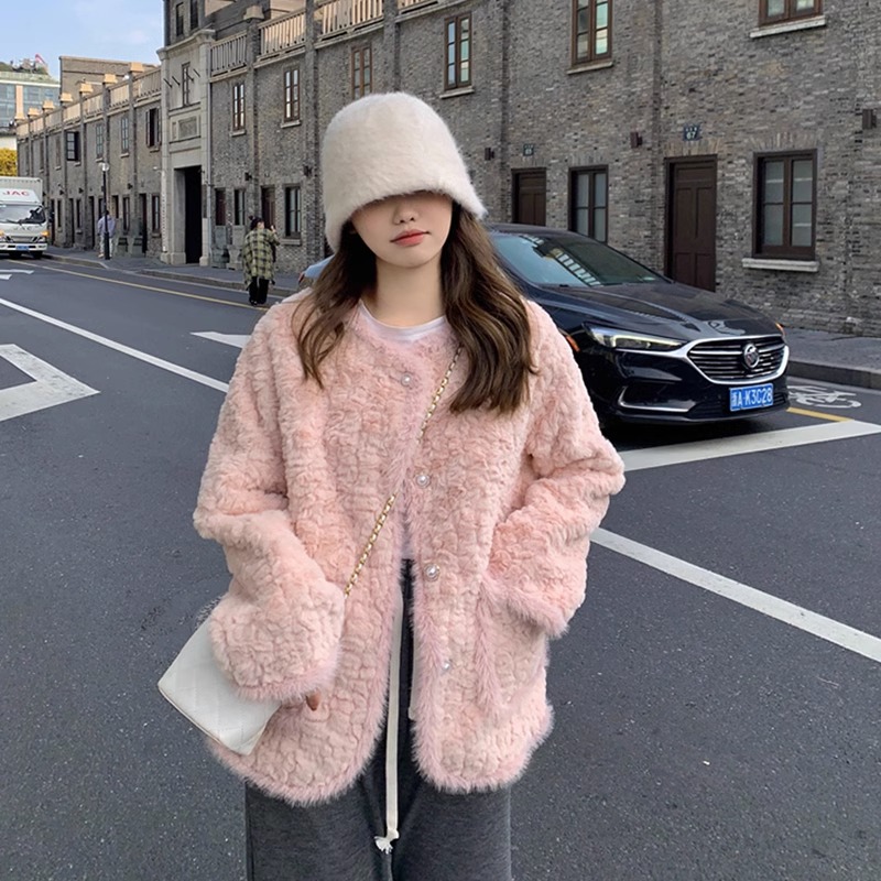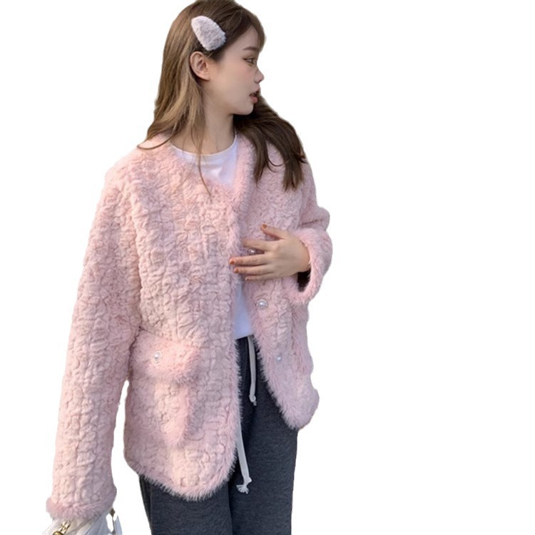 | nameOriginal | Chanel style coat for women 2023 New lamb fur imitation rabbit fur loose slimming warm high-grade plush top |