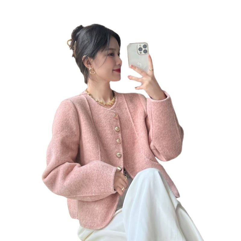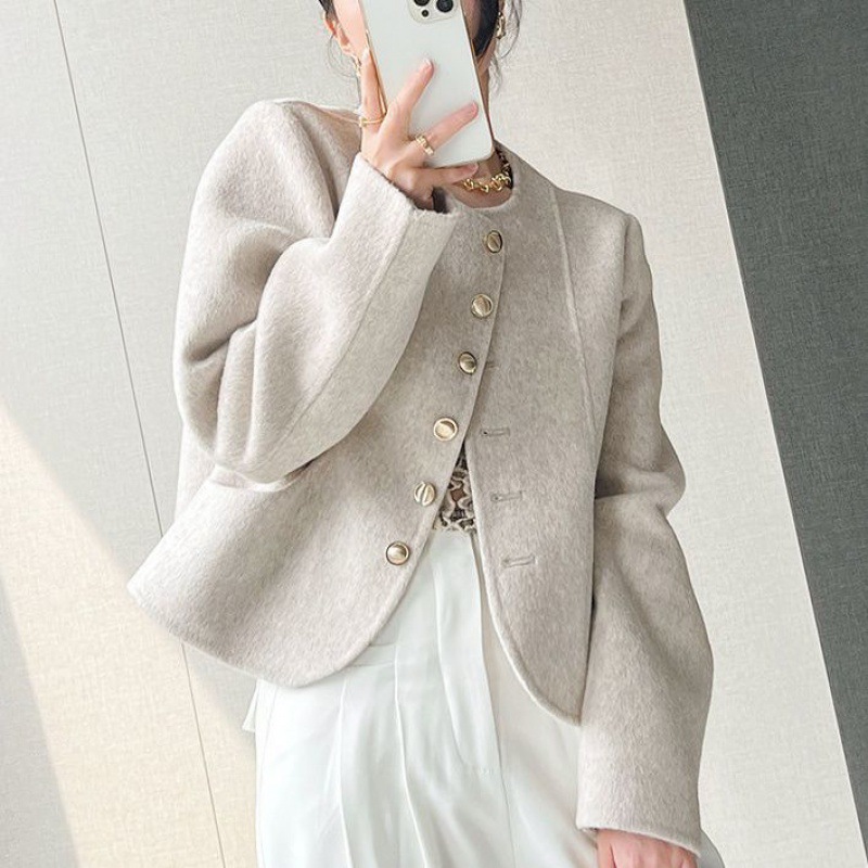 | nameOriginal | Chanel style coat women's autumn and winter New round neck single-breasted woolen coat women's design sense small woolen top |