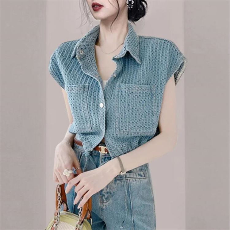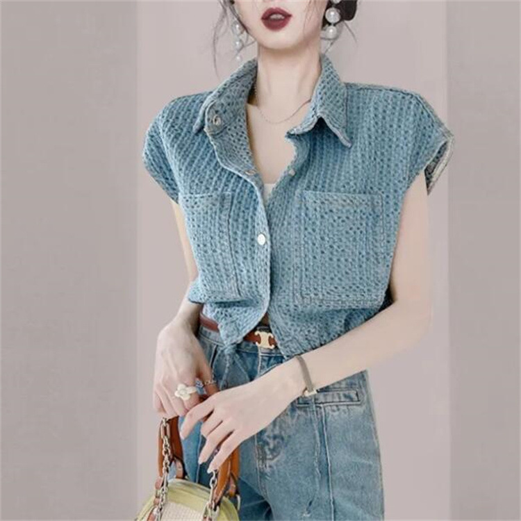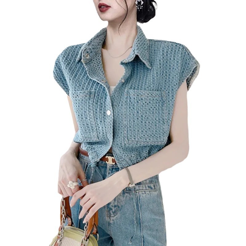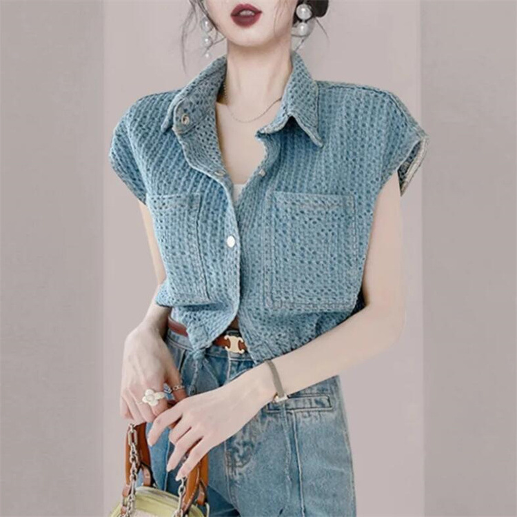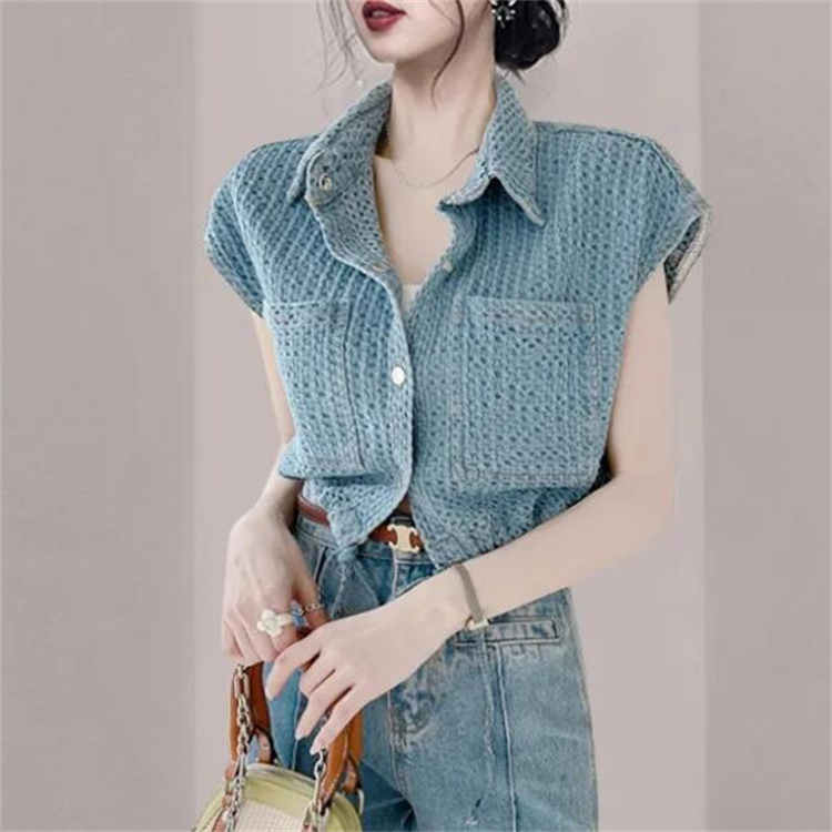 Chanel style Denim vest women's summer design versatile drawstring sleeveless vest vest top short blue vest