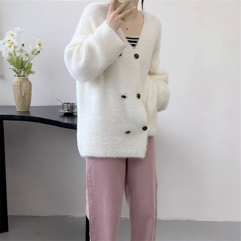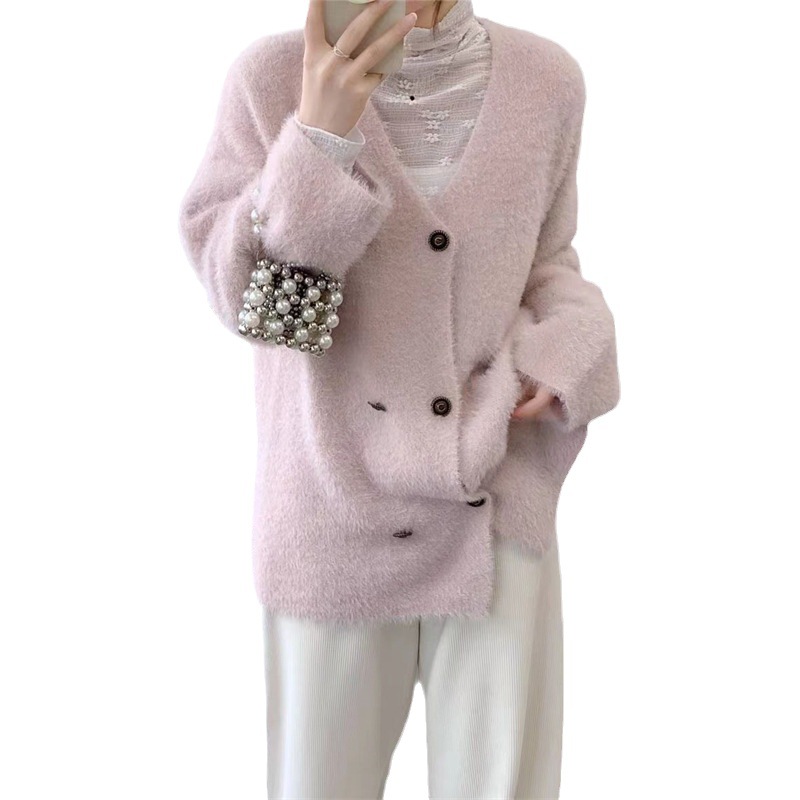 Chanel style double breasted sweater women’s coat women’s autumn and winter New light luxury faux mink fur V-neck knitted cardigan women