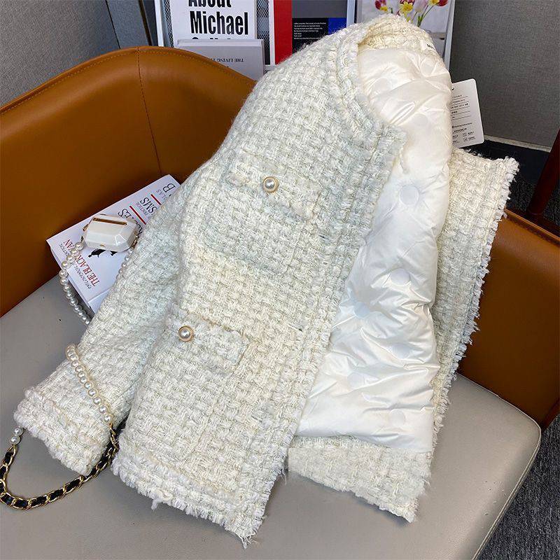 Chanel style down jacket women's winter 2023 New elegant thickened duck down liner tweed short coat