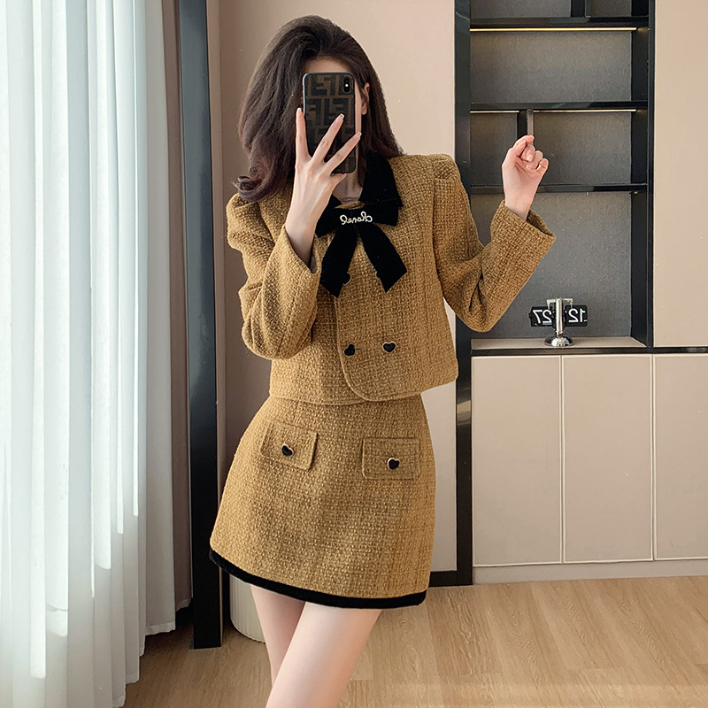Chanel Style Elegant Tweed Set Women’s Autumn and Winter 2023 New Quilted Jacket Top Half Skirt Two-piece Set