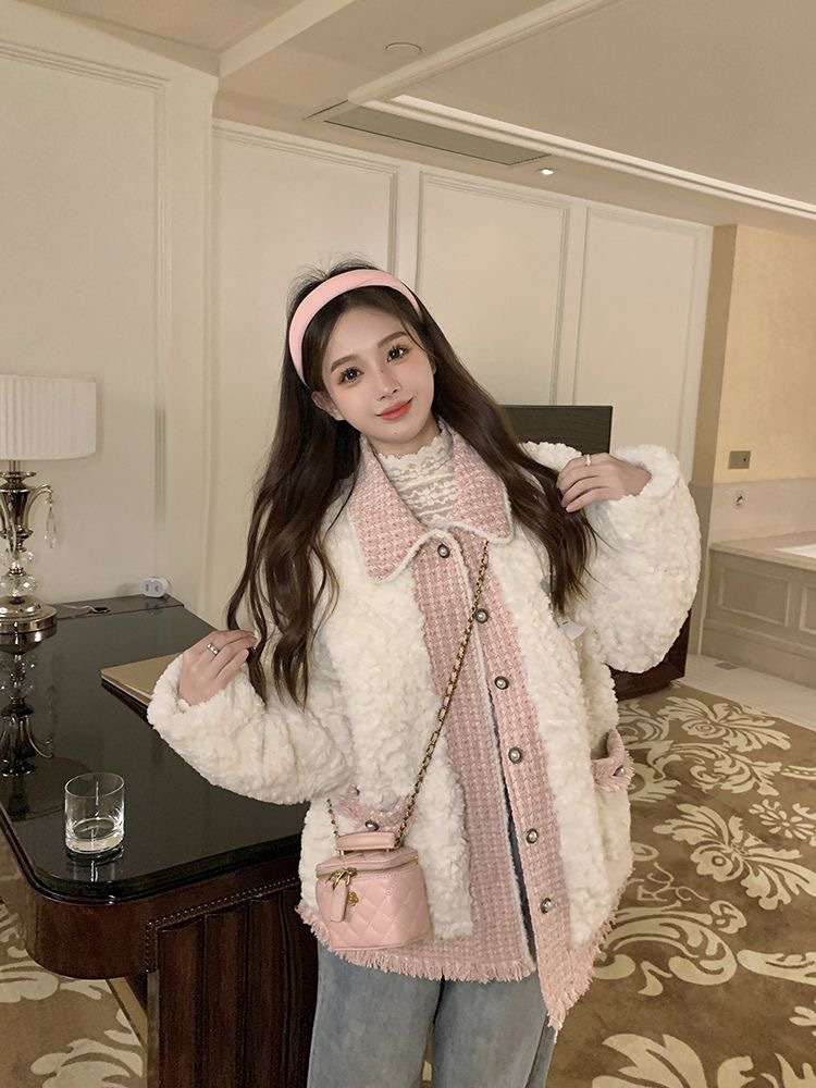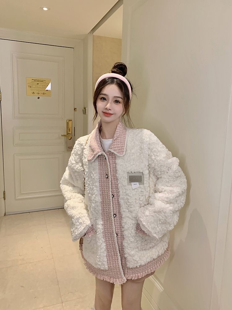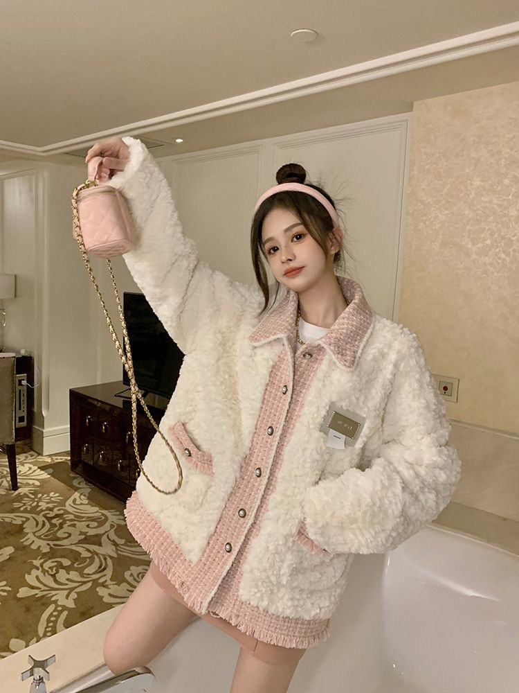 | nameOriginal | Chanel style faux lamb wool coat women's clothing winter 2023 new stitching design sense loose long sleeve cotton-padded coat cotton-padded coat |