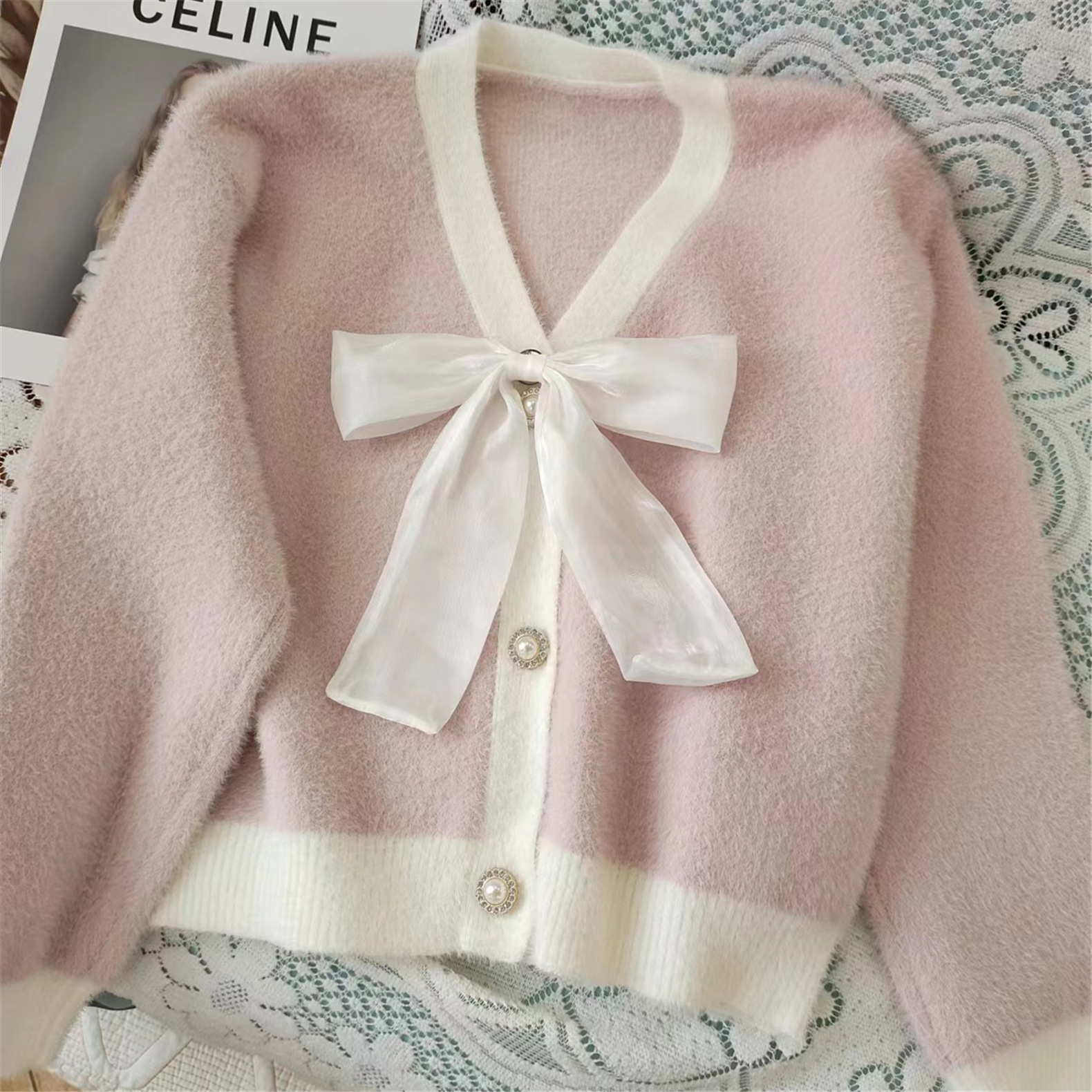 | nameOriginal | Chanel style faux mink bow sweater for women 2024 Spring and Autumn new design sense niche outdoor knitted top |