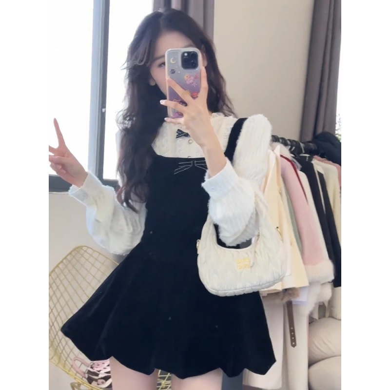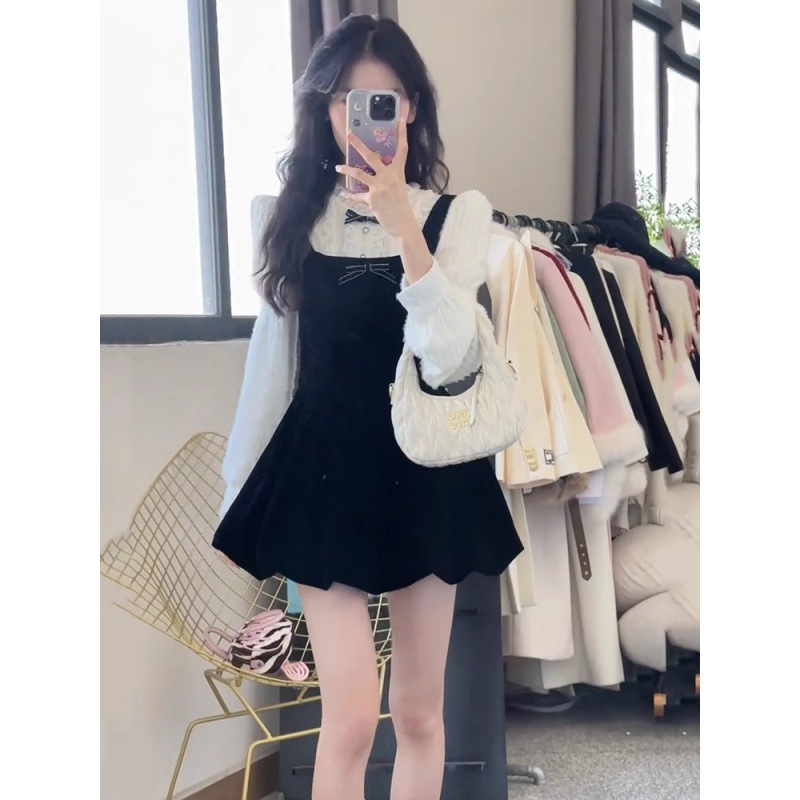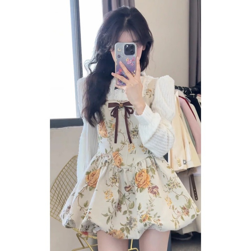| nameOriginal | Chanel style French tea series wear a set of 2024 early spring new long sleeve shirt floral suspender skirt two-piece set |