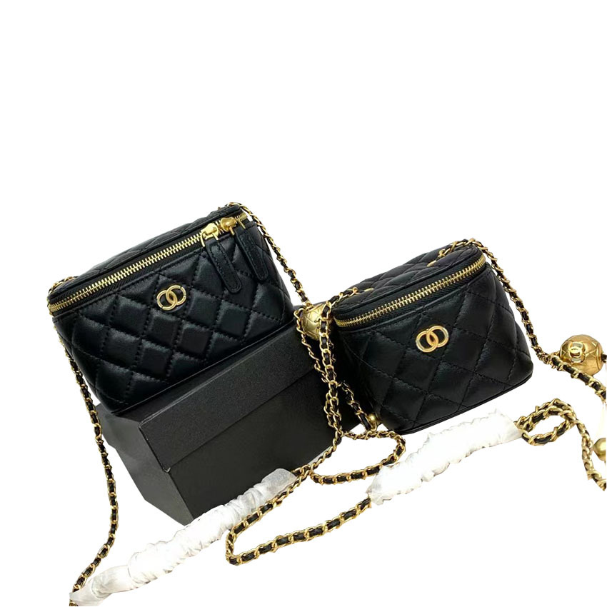 | nameOriginal | Chanel Style Gold Ball Box Bag 2024 New Chain Cosmetic Bag Shoulder Crossbody Cowhide Rhombic Lipstick Women's Bag |