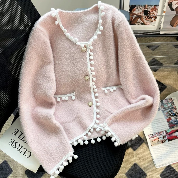 | nameOriginal | Chanel Style Imitation Mink Cashmere Jacket Women's 2024 Autumn and Winter New Korean Style Elegant Loose Outer Wear Knitted Cardigan |