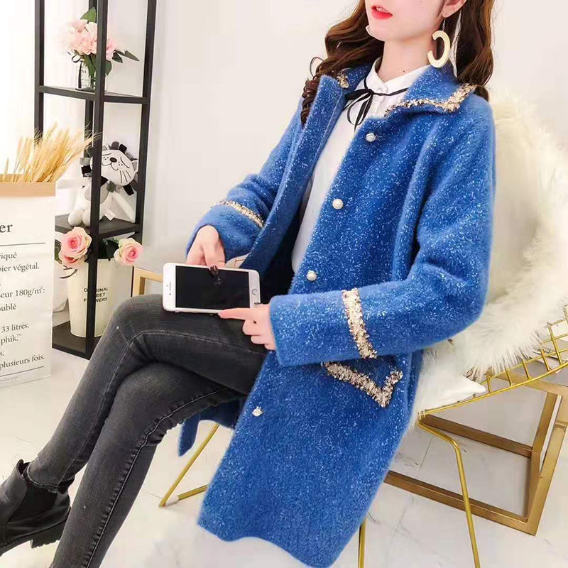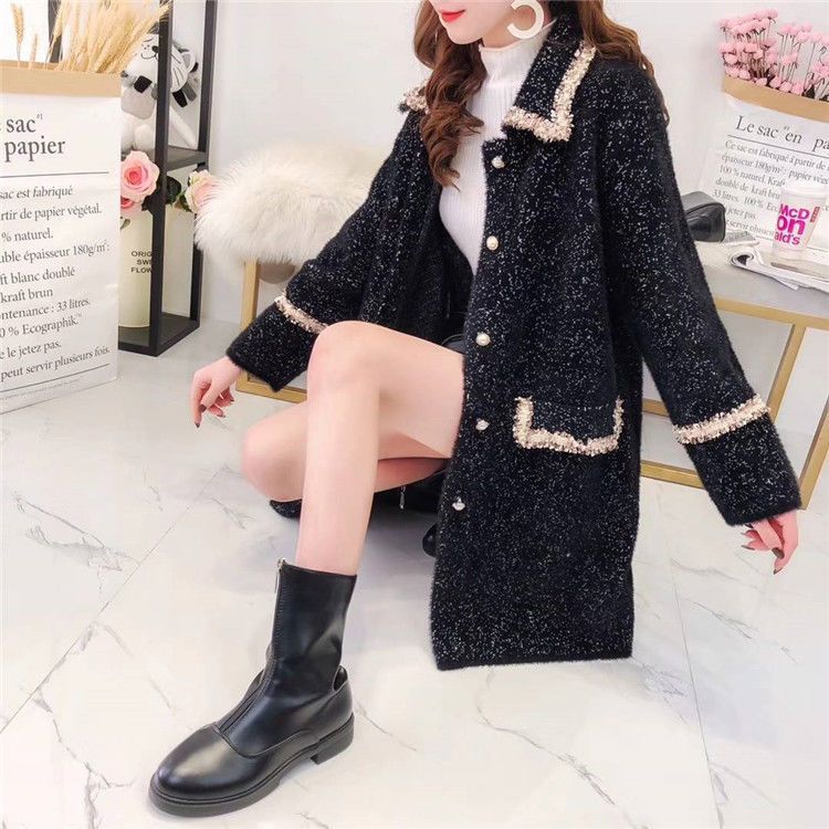 | nameOriginal | Chanel style imitation mink velvet mid-length coat new loose slimming women's cardigan thickened autumn and winter plus size woolen top |