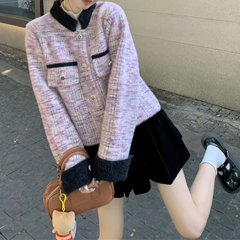 | nameOriginal | Chanel Style Korean Contrast Color Coat Women's 2024 Autumn and Winter New Style Chic Loose Super Nice Design Niche Sweater |